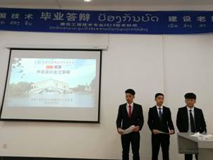 答辩中,留学生按分组顺序依次上场,从设计思路、设计方法、设计内容等方面,结合PPT展示进行10分钟左右的陈述。而后,答辩老师针对毕业设计内容提问,涉及中老建筑行业、中老建筑技术、中老建筑文化的比较等方面,或要求展开说明,或要求深入阐述,留学生都能较为清晰完整的做出应答。同时,答辩老师还与留学生们就设计中某些内容进行讨论、分析并提出有益的意见。总体而言,本届留学生毕业设计质量和现场答辩水准都达到了相关毕业要求。