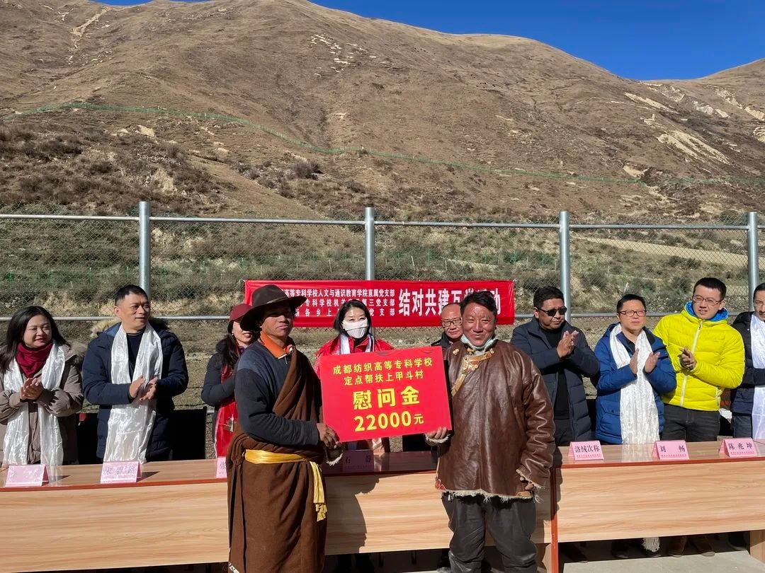巩固拓展脱贫攻坚成果同乡村振兴有效衔接过渡期两年来,成都纺专为定点帮扶村翁达村和上甲斗村捐赠15.8万元用于两村基础设施建设、产业帮扶和人居环境改善,为困难群众捐资捐物共计62000元,捐赠220套价值44000元爱心服装,向两个村党支部发放共建共创帮扶资金4000元,为杨各乡7个行政村捐赠35台价值50000元的缝纫机;今年色达发生“8·31”新冠肺炎疫情期间,为两村捐赠10000个医用外科口罩。