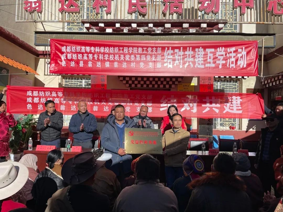 初冬时节,石静校长一行冒着寒冷一路劳顿,从平原上到高原。翁达村和上甲斗村村级活动室院坝里十分热闹。翁达镇党委和杨各乡党委主要负责同志就本乡镇开展巩固拓展脱贫攻坚成果同乡村振兴有效衔接和落实承接帮扶作了汇报。石静和学校纪委书记张江婴分别作了讲话,代表成都纺专纺织工程学院教工党支部、机关党委第四党支部和人文与通识教育学院直属党支部、机关党委第三党支部,向翁达村党支部、上甲斗村党支部颁发“党建结对共建”牌匾;成都纺专领导为两村困难群众发放慰问金40000元,向两村党支部发放党的二十大学习图书和共建共创帮扶资金4000元。