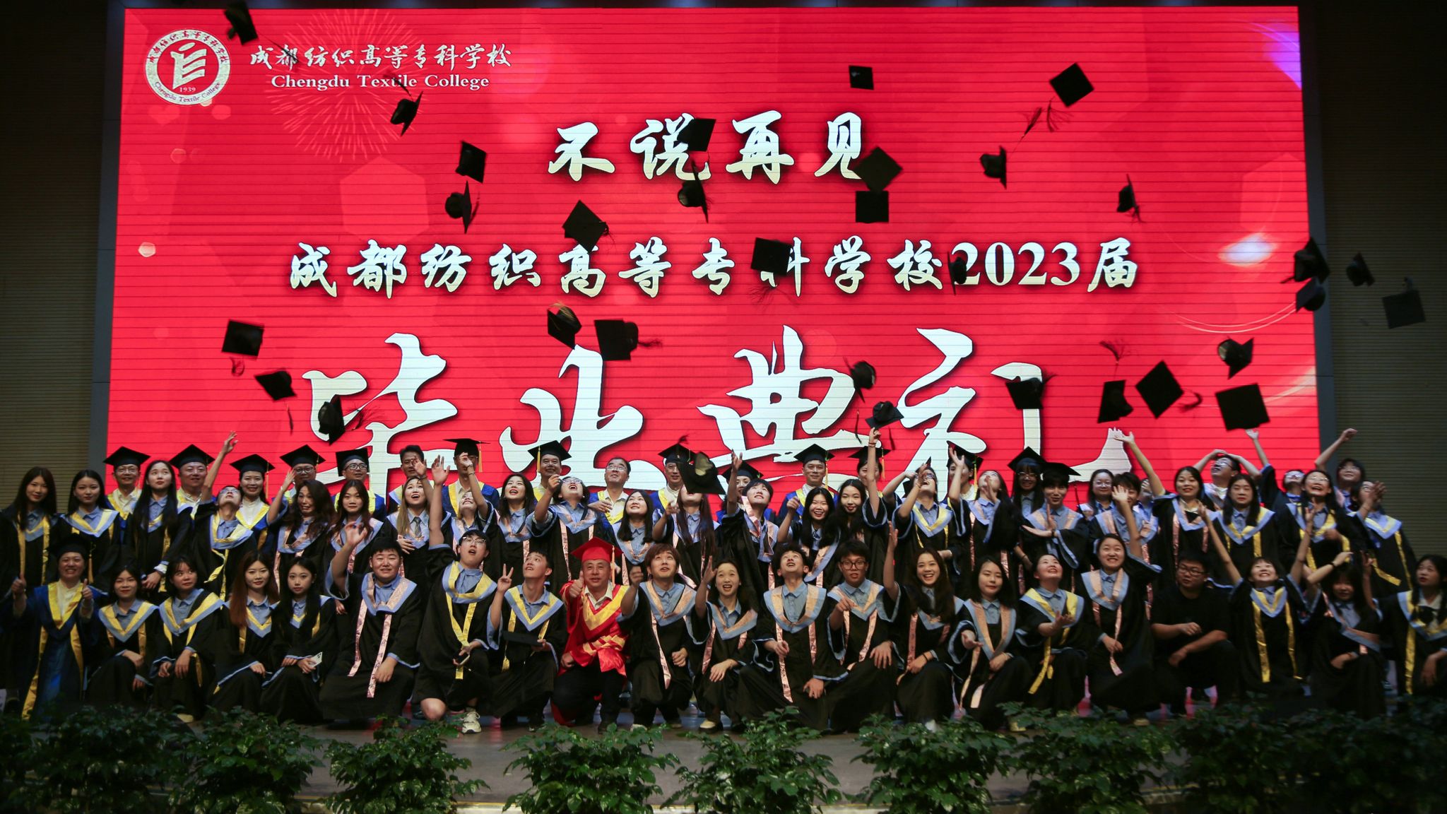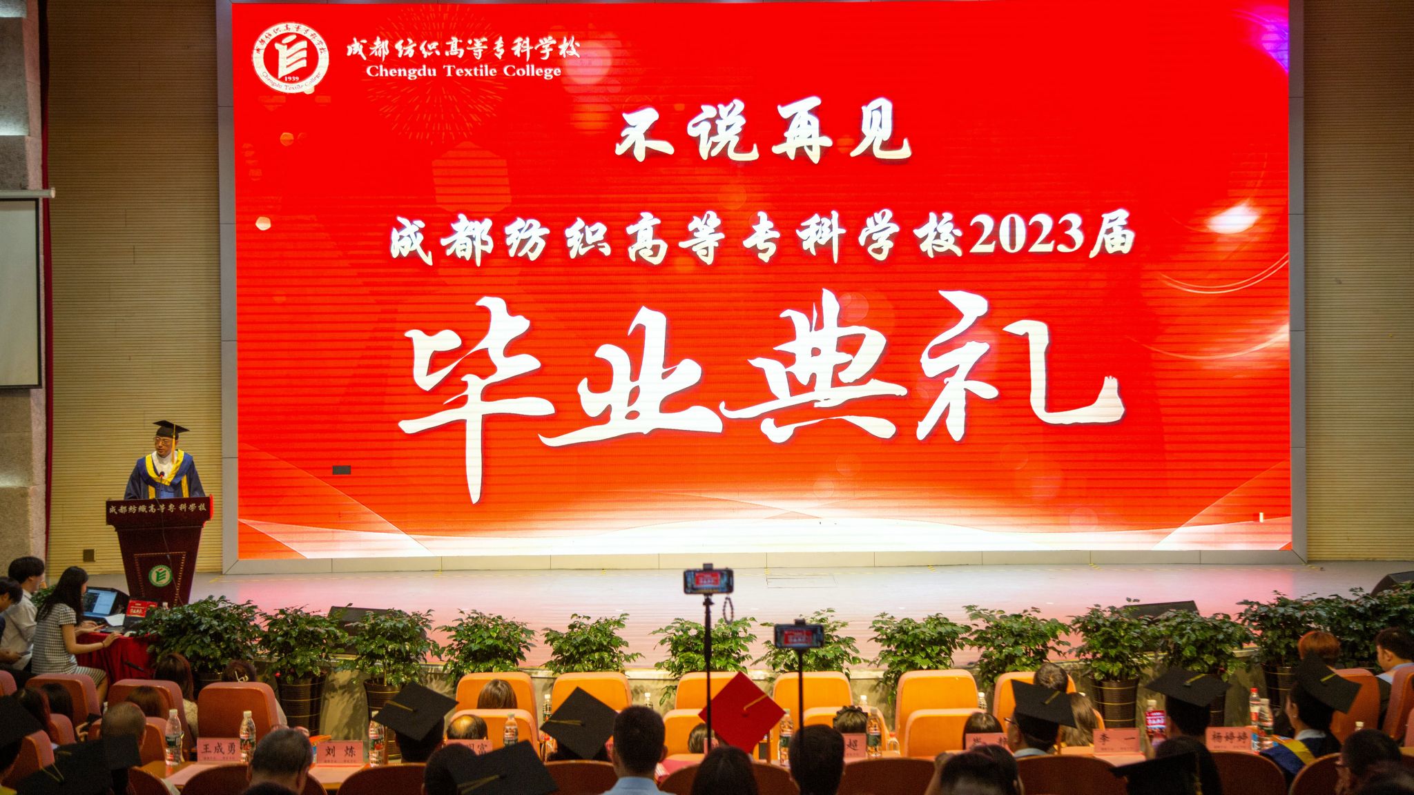 上午9时许,在庄严的国歌声中,典礼正式开始。蔡玉波致辞,代表学校向2023届毕业生表示祝贺,带着同学们一起回顾了三年的纺专时光。琅琅书声,欢歌笑语,一起战斗的劳动场,邛崃产教园区的变化……都见证了同学们的成长。蔡玉波对同学们提出两点希望:一是带着责任和担当,追求卓越人生。怀揣着爱国之志和使命感,成为“能吃苦、肯奋斗、技艺精、善创造”的纺专青年、时代青年。二是保有善良和真诚,勇敢面向未来。始终把虚心从善作为人生追求,带着最初的梦想,坚守正确的世界观、人生观、价值观,努力在实现中华民族伟大复兴中国梦的生动实践中砥砺前行,拥有一个有尊严、有价值、有希望的美好人生。