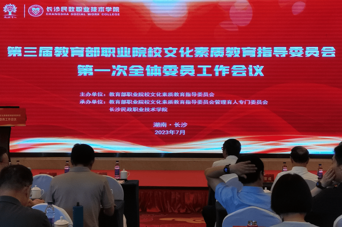 7月9日,党委书记蔡玉波带领人文与通识教育学院直属党支部书记李光胜一行赴湖南长沙参加第三届教育部职业院校文化素质教育指导委员会(以下简称“教指委”)第一次全体会议。会议由教指委管理育人专委会、长沙民政职业技术学院承办,来自全国46个委员单位的90余人参会。
