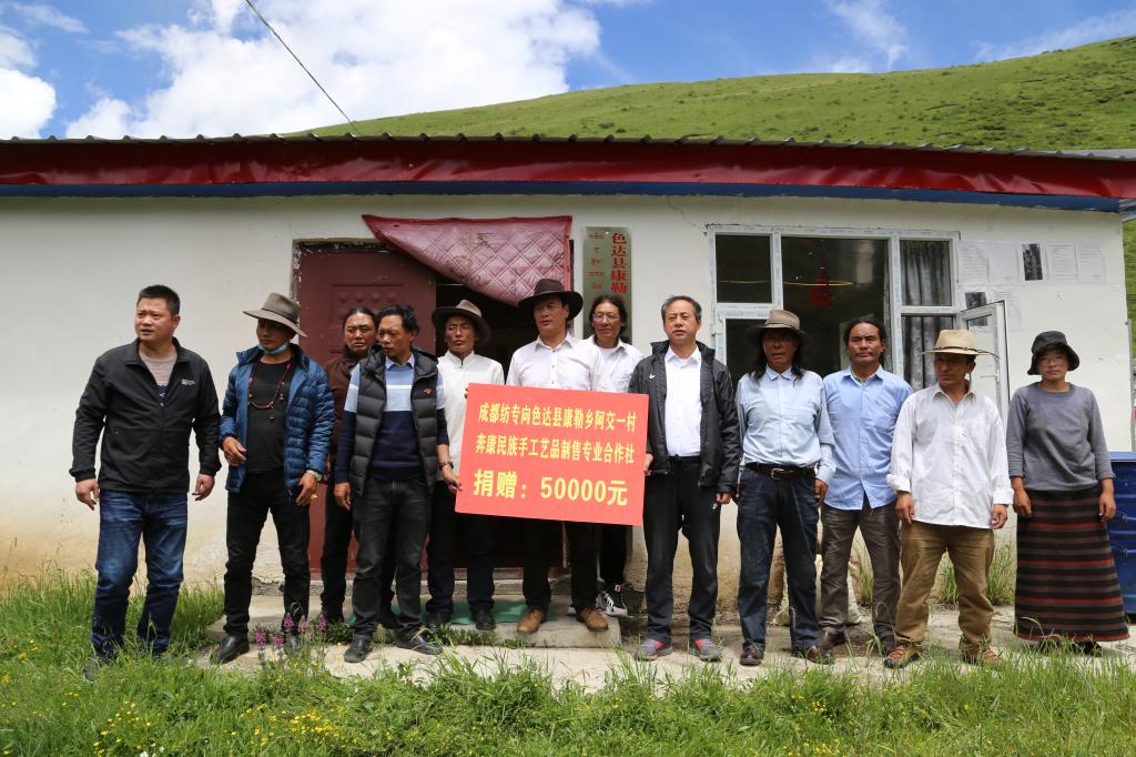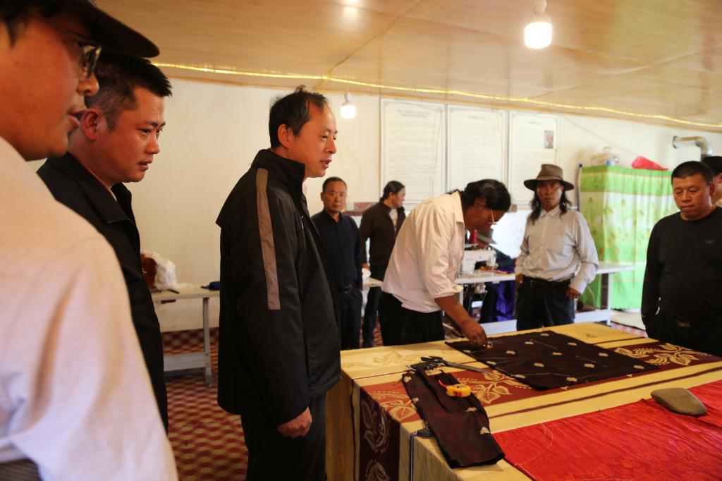 随后,蔡玉波到阿交一村奔康民族手工艺品制售专业合作社进行实地调研指导,听取了阿交一村党支部书记所郎对合作社缝纫产品的种类、制作过程、销售对象、运行情况的介绍。为支持合作社发展壮大,蔡玉波代表学校向合作社捐赠50000元发展扶持资金,用于合作社的设备添置、设备更新、购置材料和业务水平提升培训等开支。