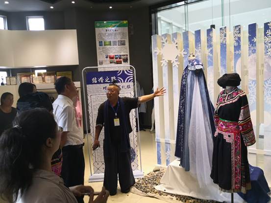 结业作品分为四个系列共12套近20余件,由服装学院老师分组指导学员完成,包括苗族服装、藏族服装、羌族服装和彝族服装。创作组组长和学员代表一边热情地介绍他们的结业作品,一边给大家讲述这些服装的款式和图案所蕴含的历史故事、体现的本民族的文化和传统。结业作品将各民族传统文化与现代生活相结合,精美、时尚,生动、传神,富有民族特色,获得参观人员的一致好评。