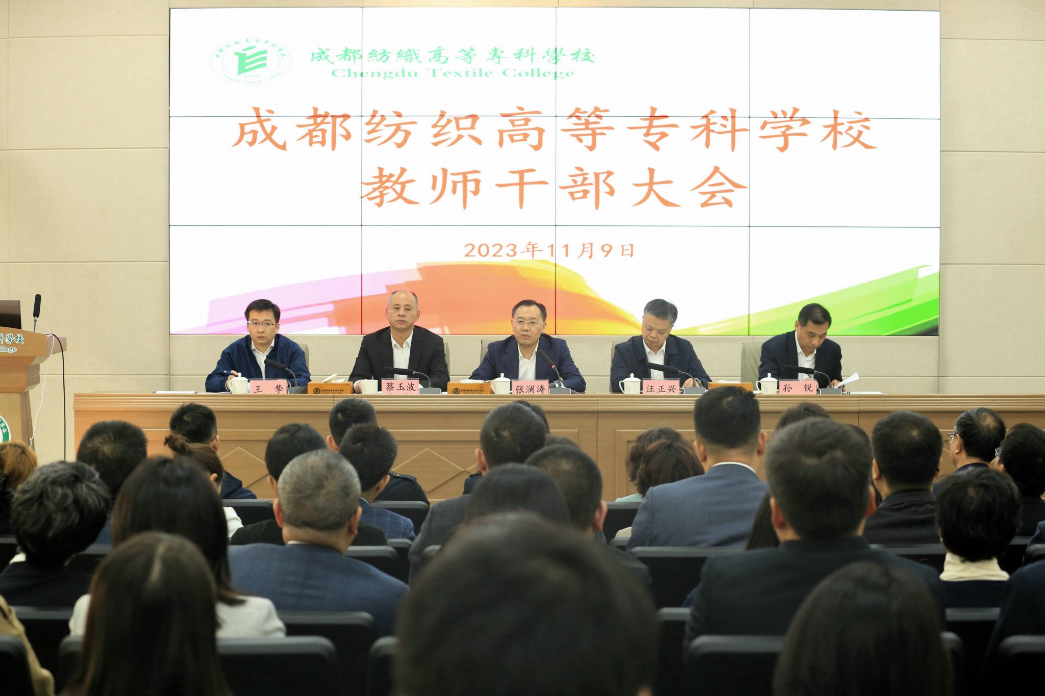 蔡玉波代表全校教职工欢迎孙锐同志加入成纺大家庭,表示将按照“政治强、作风硬、讲团结、干实事”的班子建设目标,团结带领学校班子,进一步统一思想、统一认识、团结协作,坚持和完善党委领导下的校长负责制,全力支持孙锐校长开展工作,朝着成都轻纺工程职业技术大学的发展目标狠抓内涵建设;学校党委深入开展学习贯彻习近平新时代中国特色社会主义思想主题教育,切实将省委、省政府、省委教育工委、省教育厅的部署要求落实到推进学校事业改革发展各方面,不断开创学校事业高质量发展新局面,为谱写中国式现代化四川新篇章贡献成纺力量。