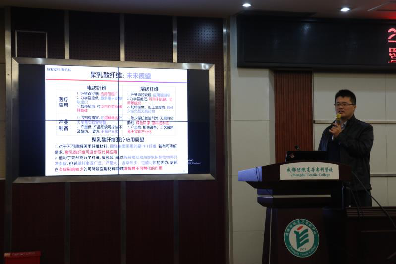 相恒学博士代表朱美芳院士团队作了《生物基纤维研究进展及应用》主题报告,从再生纤维素功能纤维、熔纺木质素碳基纤维、聚乳酸及其阻燃纤维等几个方面讲述了生物基纤维的特点、其中存在的问题以及未来的发展。