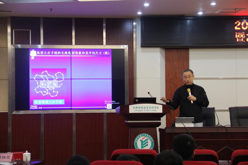 校长夏平代表bwin手机客户端对几位专家表示热烈的欢迎。随后吴奇院士作了《“大分子溶液”教和学中的若干问题并兼谈素肉的研发》主题报告。他介绍了大分子的组成、链接和分布,提出了“体积在宏观和微观状态下的相互作用”“一条真实大分子链上存在的两点间的相互作用”“大分子链从卷曲到伸展的构象转变”等一系列问题,深入浅出地介绍了高分子溶液的物理性能,并介绍了他的课题组正在研究的“素肉”项目进展情况。