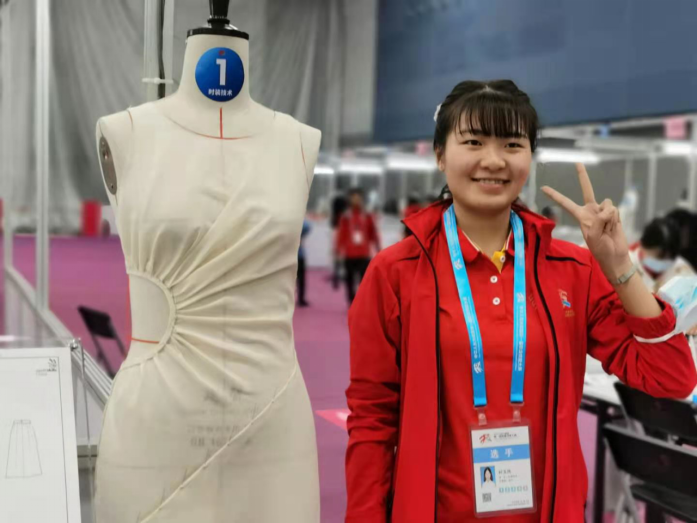 参加时装技术(世赛)项目的选手为服装专业189班学生时玉凤,2019年,她经过省赛选拔,与其他5名学生一起进入四川省集训队。集训期间新冠疫情爆发,集中训练被迫中断,但她在教练指导下坚持在家训练,一边干着繁重的农活,一边利用空闲时间强化绘画训练。疫情缓和后,她于5月7日回到集训队开始全封式的训练,在6月开始的为期3个月的积分赛中稳定发挥,凭借过硬的技能和遥遥领先的成绩,在9月进行的四川省集训队四进一晋级赛中一举夺魁,拿到了直通国赛的门票。最后,在第一届全国技能大赛比赛中,时玉凤沉着迎战,取得第4名,获全国技术能手称号,并入围世赛国家集训队。