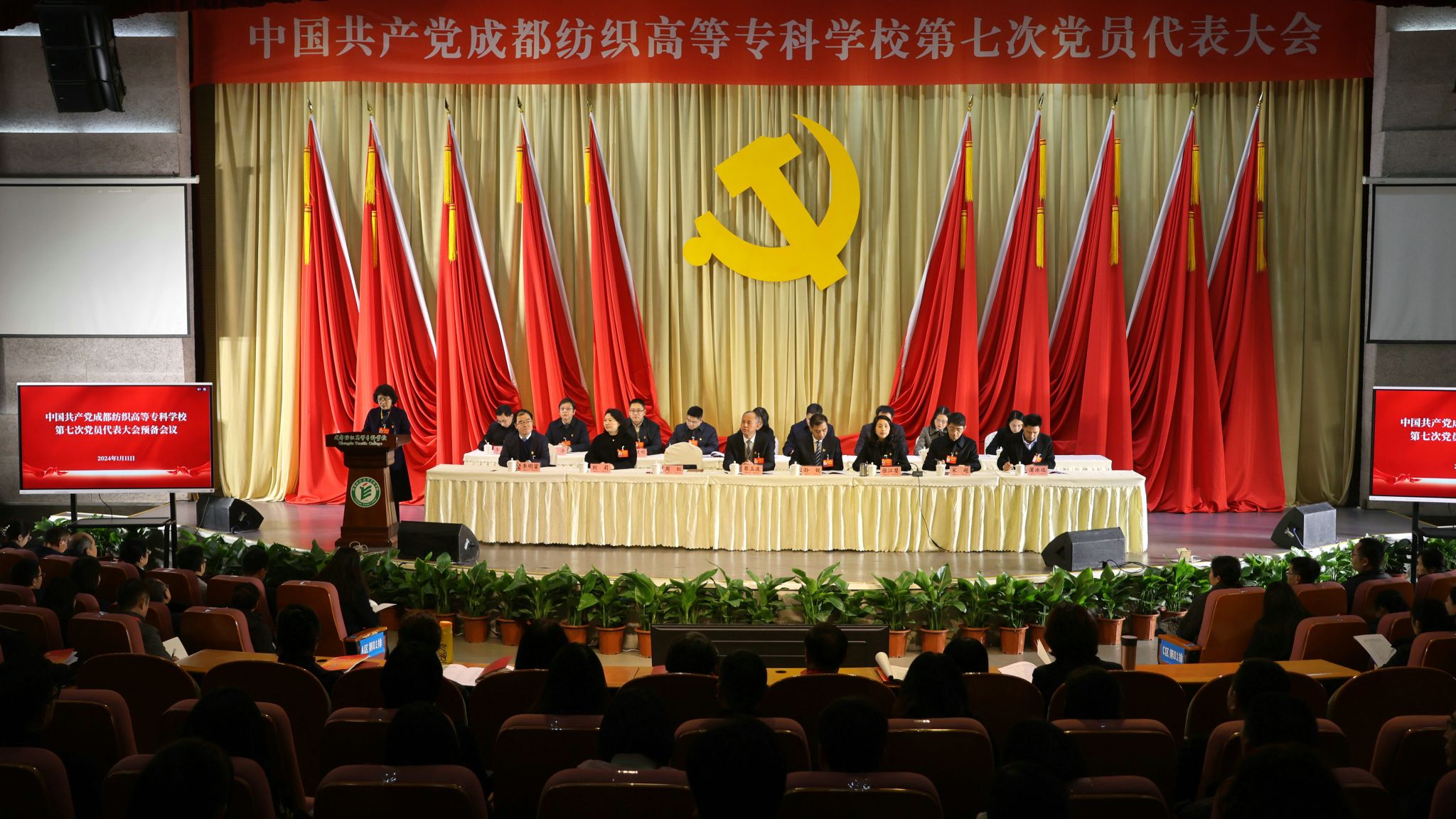 学校第七次党代会应到代表147名,因事、因病请假9名,实到会代表138名。