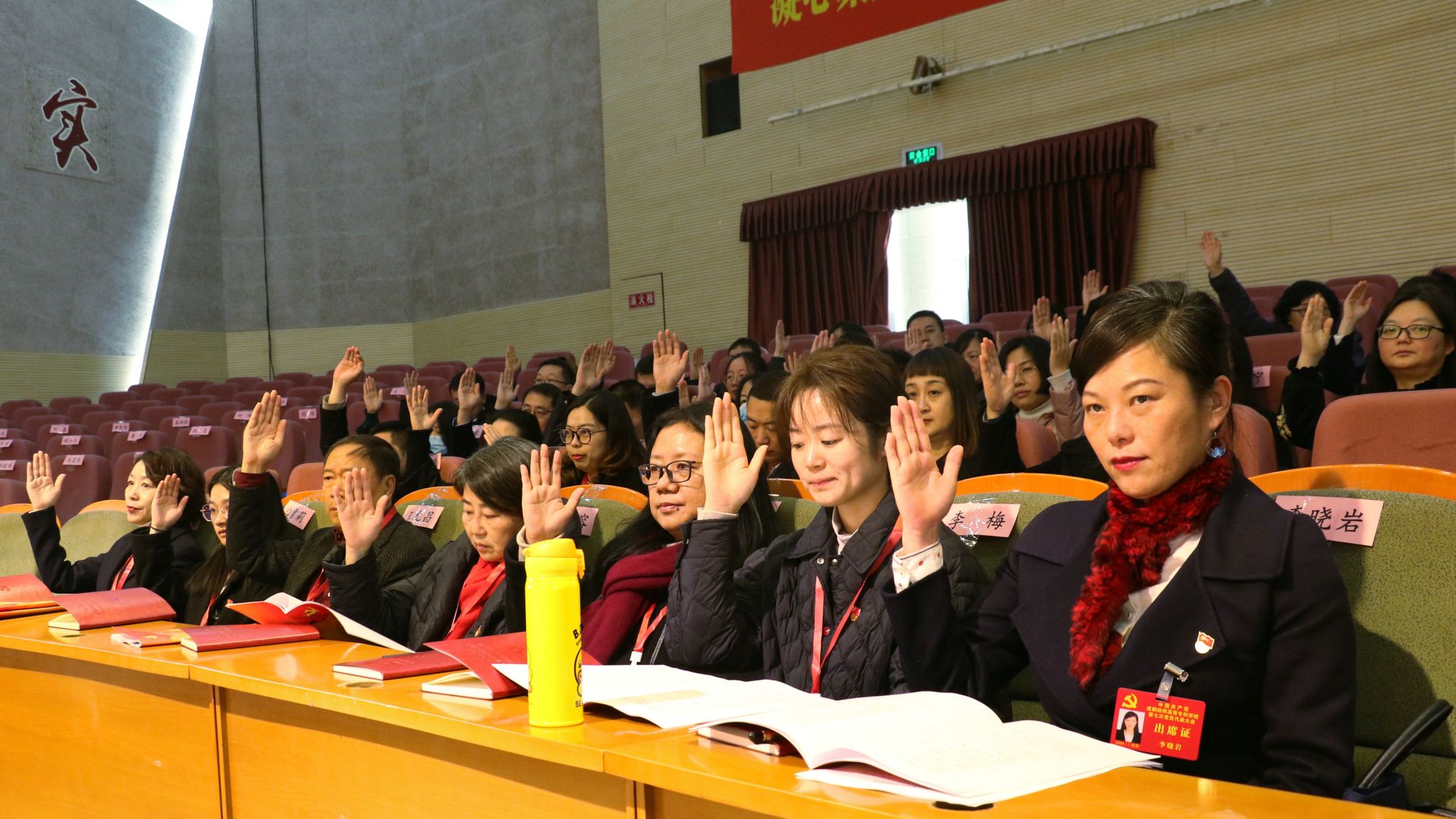预备会以举手表决的方式,通过了学校第七次党员代表大会代表资格审查报告、大会主席团成员及秘书长名单,并审议通过大会议程。