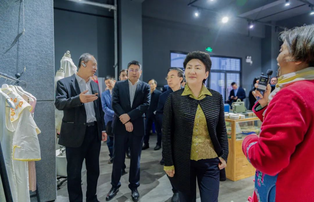 在党委书记蔡玉波,党委副书记、校长孙锐等学校领导陪同下,包惠一行深入学校蜀锦织造基地、四川省织绣技艺非遗数字化保护与传承重点实验室、绣艺苑学研馆和蜀绣大师工作室,调研bwin手机客户端蜀锦蜀绣产学研用情况及数字化保护与创新工作,与蜀锦蜀绣大师和传承人马德坤、钟秉章、贺斌、曹代武、孟德芝、朱利容、邬学强、袁伟、乔永平、苏舒、邓琴文等亲切交流。