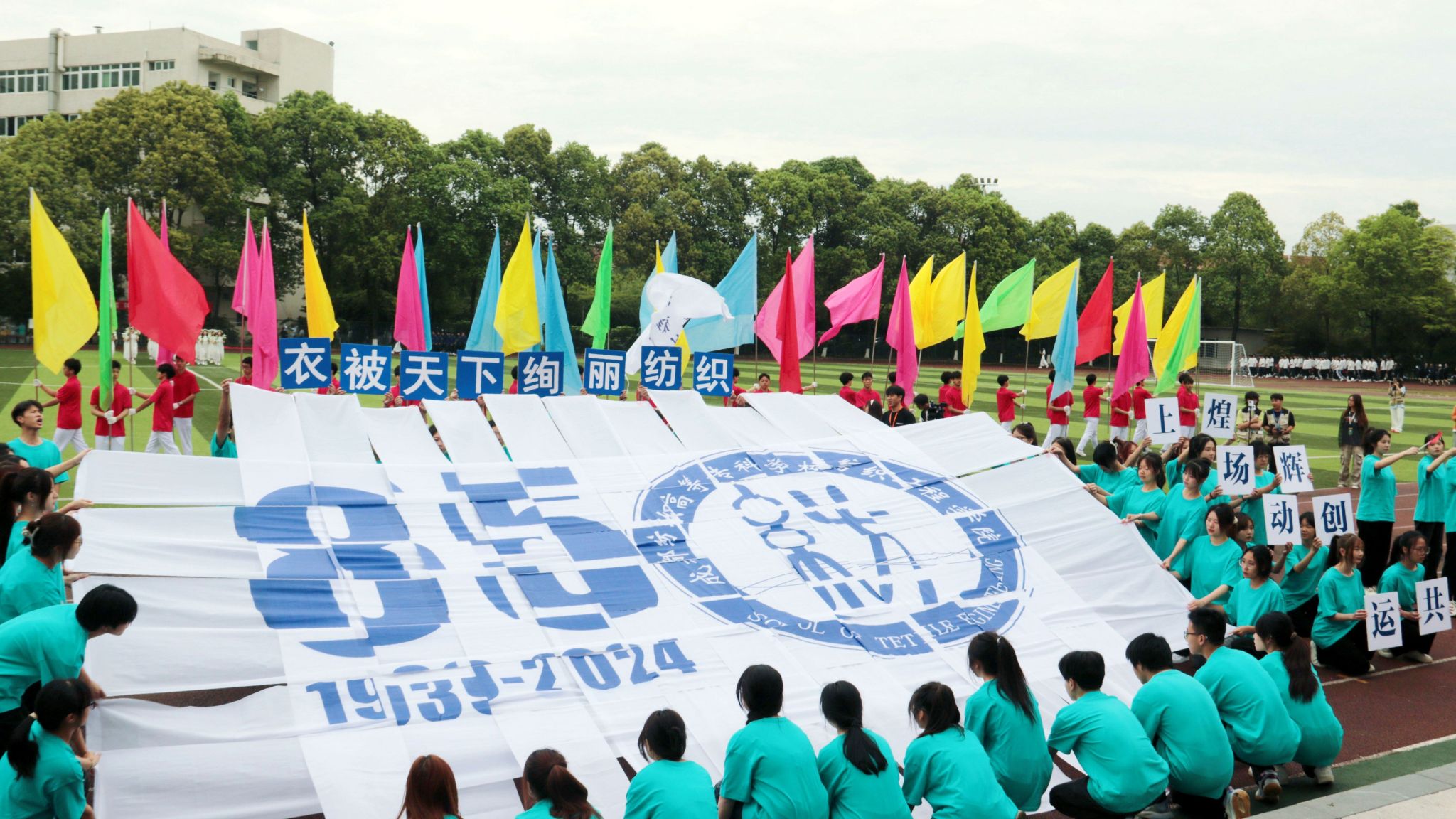国旗护卫队、彩旗方队、鲜花方队、裁判员方队、各学院及工会等21个方队迈着整齐的步伐依次进入会场,各方队师生衣着整齐、口号嘹亮,展现出良好的精神面貌和蓬勃的青春活力。