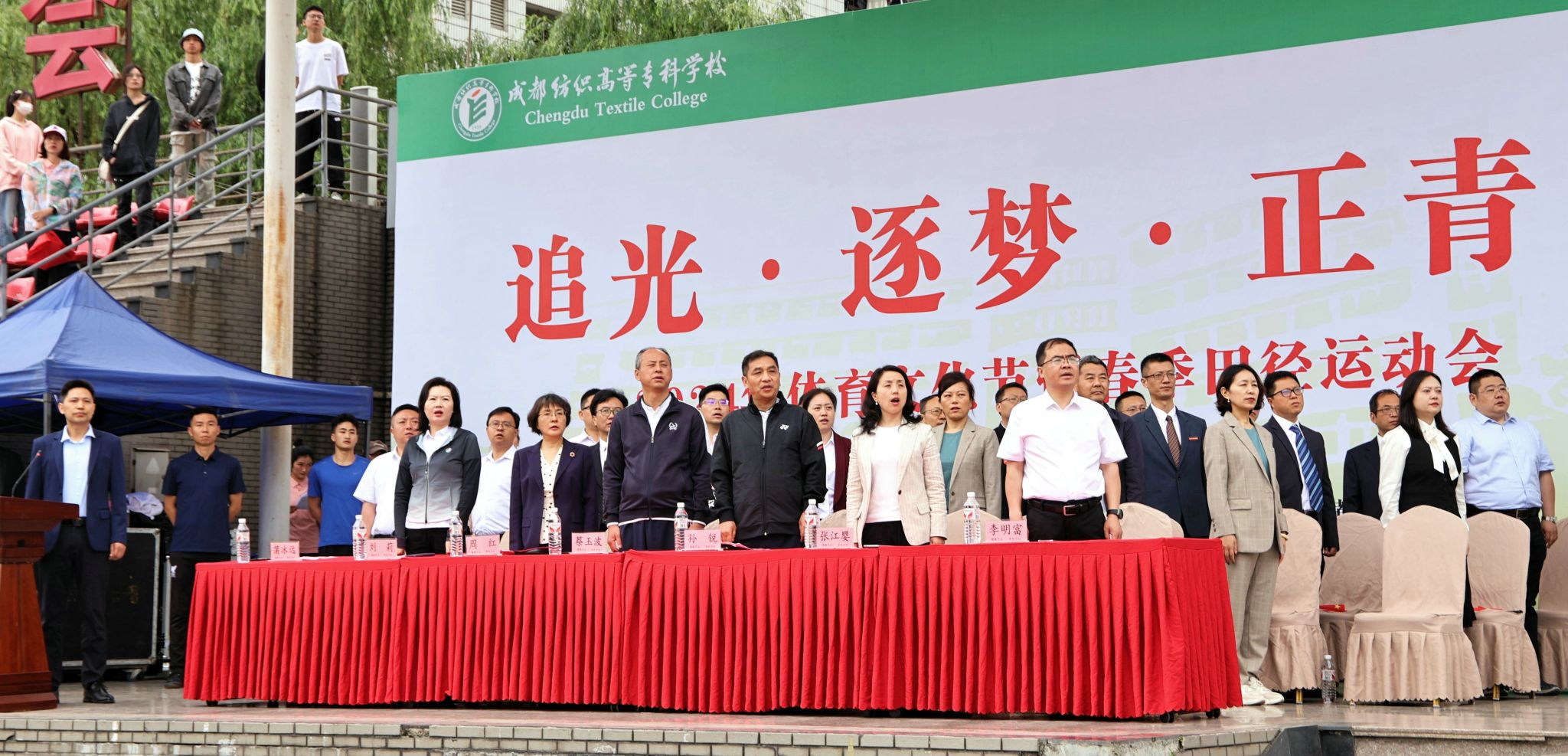 4月24日上午,bwin手机客户端“追光·逐梦·正青春”2024年体育文化节暨春季田径运动会开幕式在南苑运动场正式举行,运动员、裁判员和师生观众数千人参加开幕式。学校党委书记蔡玉波宣布体育文化节开幕,校长孙锐致开幕辞,副校长蒲冰远主持开幕式。
