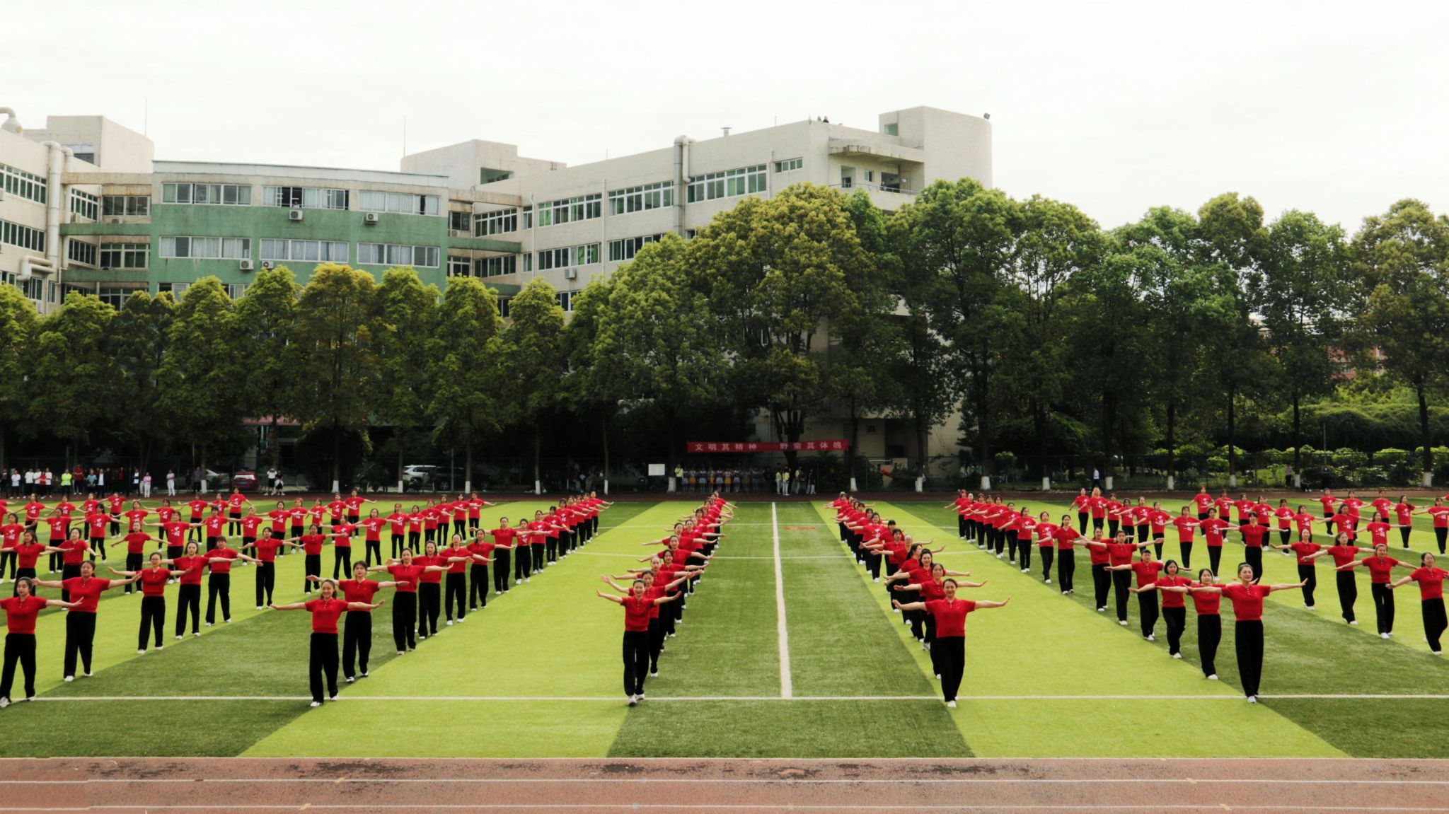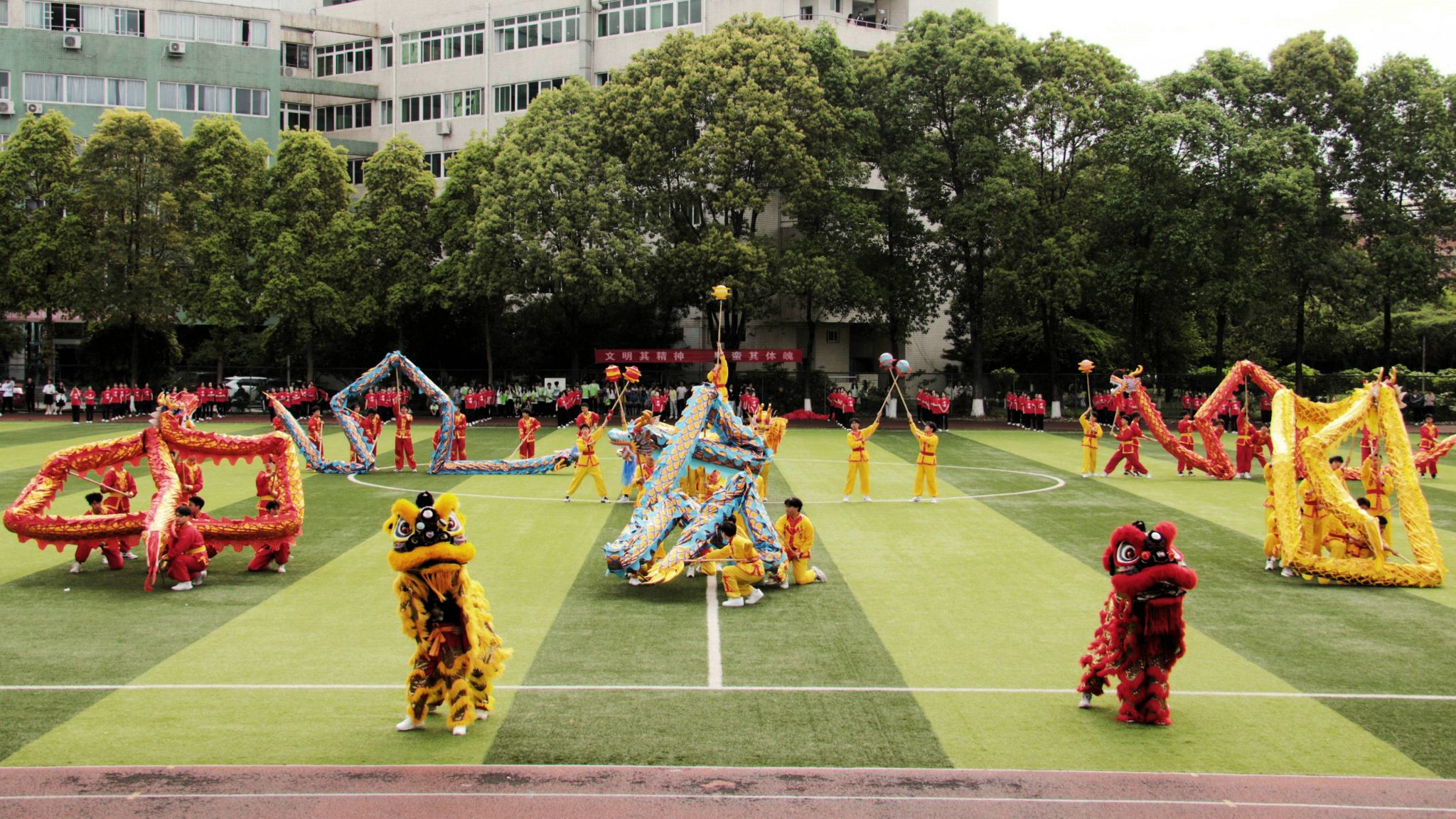 运动员代表和裁判员代表庄严宣誓后,蔡玉波宣布本次体育文化节正式开始。团体操随即精彩上演,整场表演分为追光、逐梦、正青春三个部分:中国红鼓、功夫扇、舞刀、彩带龙表演中国味十足;舞龙舞狮英姿飒爽,尽显精气神;师生共舞《中国同心圆》,展现浓浓师生情,啦啦操《一起跳起来》活力四射,充满青春朝气。