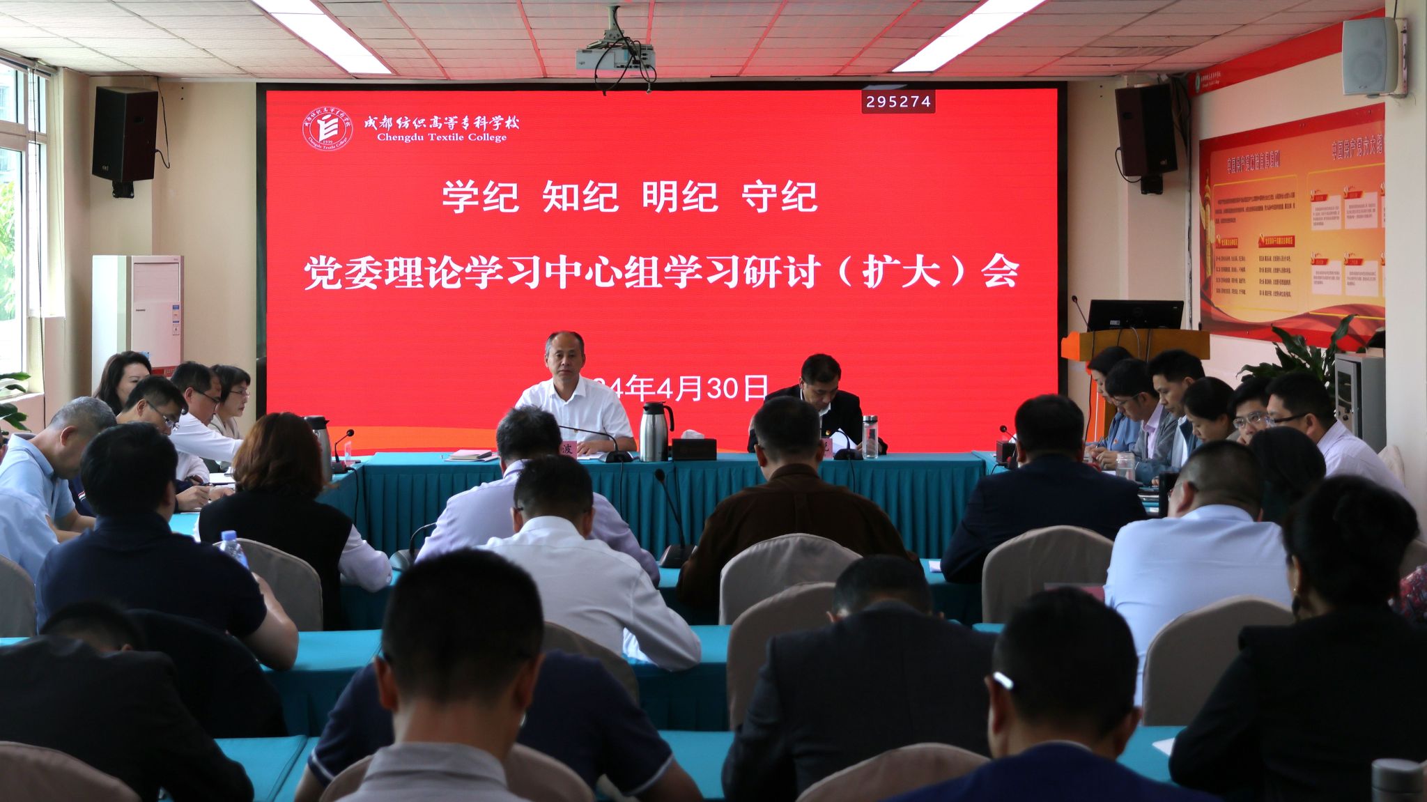 4月30日,学校召开党委理论学习中心组学习研讨(扩大)会,围绕“学纪、知纪、明纪、守纪”主题学习研讨。会议由党委书记蔡玉波主持。
