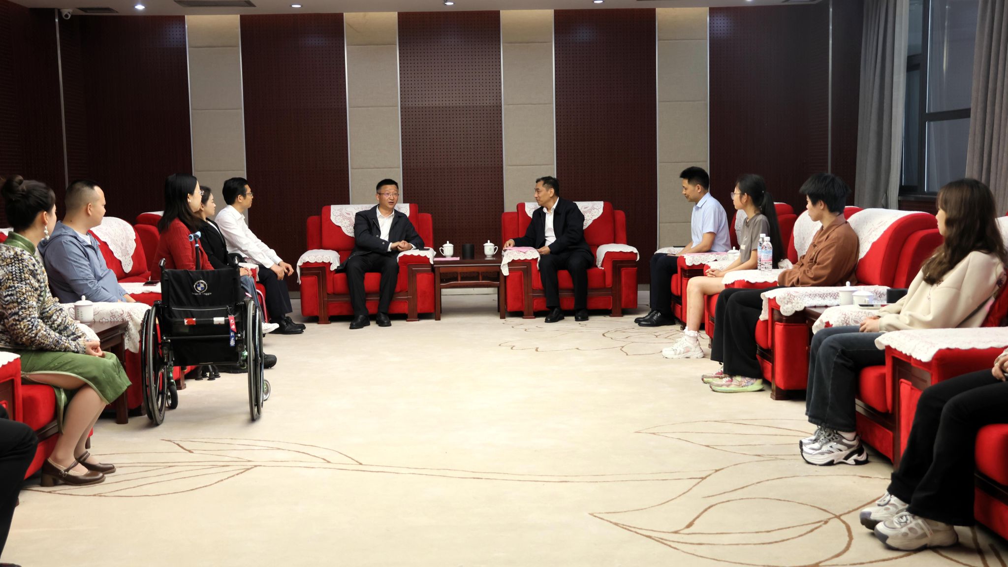 在图书馆一层接待室,黄卫德等与bwin手机客户端残疾学生代表座谈,向他们介绍我国残疾人政策和助残事业成就,勉励他们向代国宏、叶莹、张晓丽、张琳馨等学习,勇敢逐梦、追梦、圆梦,成就精彩人生。