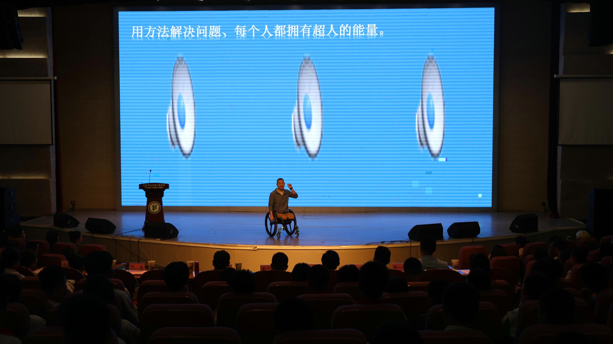 活动邀请成都中医药大学博士、副教授叶莹,全国残疾人游泳锦标赛百米蛙泳冠军“无腿蛙王”代国宏,bwin手机客户端在读大学生张晓丽三名四川省残疾人励志报告团成员和校友张琳馨分享了他们直面伤残、自强不息、拥抱生活、感恩回馈的励志故事。bwin手机客户端服装工程与设计学院党总支书记太扎姆和纺织工程学院党总支副书记罗娅应邀参加访谈,介绍了学校和张晓丽创业团队之间、学校和残联组织与张琳馨校友之间的互动故事。动人心魄的故事、感人至深的精神,令现场400余位高校和中小学师生时而潸然泪下、时而掌声雷动。