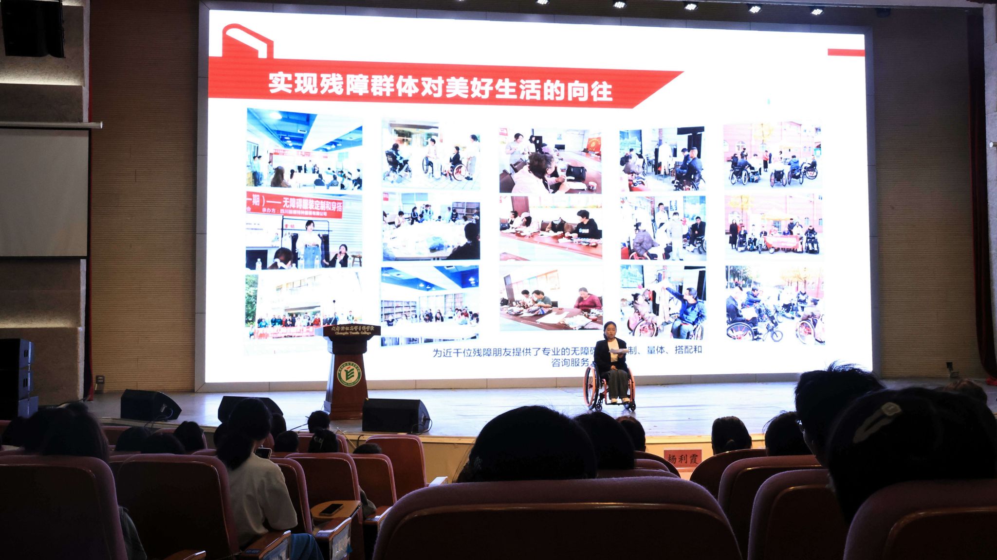黄卫德指出,在5月19日第34次全国助残日即将来临之际,本次主题宣讲暨展示活动走进成纺,是因为学校办学历史悠久、优势特色突出、残健融合共享,孵化了如残疾学生张晓丽的“无障碍服装工作室”等优秀助残就业项目,培育了张琳馨等残疾人大学生创业者典型,在促进残疾大学生就业创业方面起到了良好的示范带头作用。希望活动让励志典型自强不息、感恩奋进的精神成为教育人、鼓舞人、塑造人的生动教材,让广大师生了解、理解、尊重残疾人朋友,大力弘扬“平等、融合、共享”的价值理念,广泛开展志愿助残服务,促进残疾人事业全面发展、高质量发展。