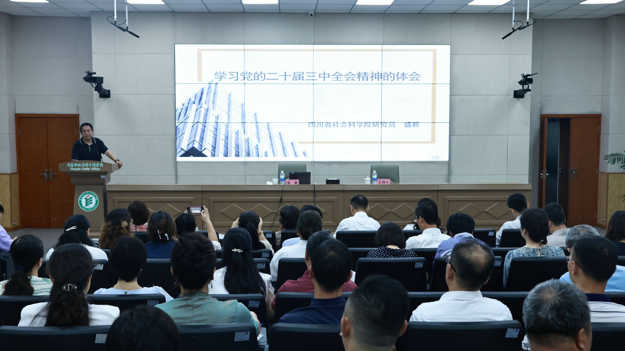 9月14日,按照省委宣传部统一部署,省委宣讲团专家、盛毅研究员走进bwin手机客户端,作党的二十届三中全会精神宣讲报告。校级领导、科级及以上干部、党外知识分子、各学院教师和学生代表400余人参会,学校党委副书记、校长孙锐主持。
