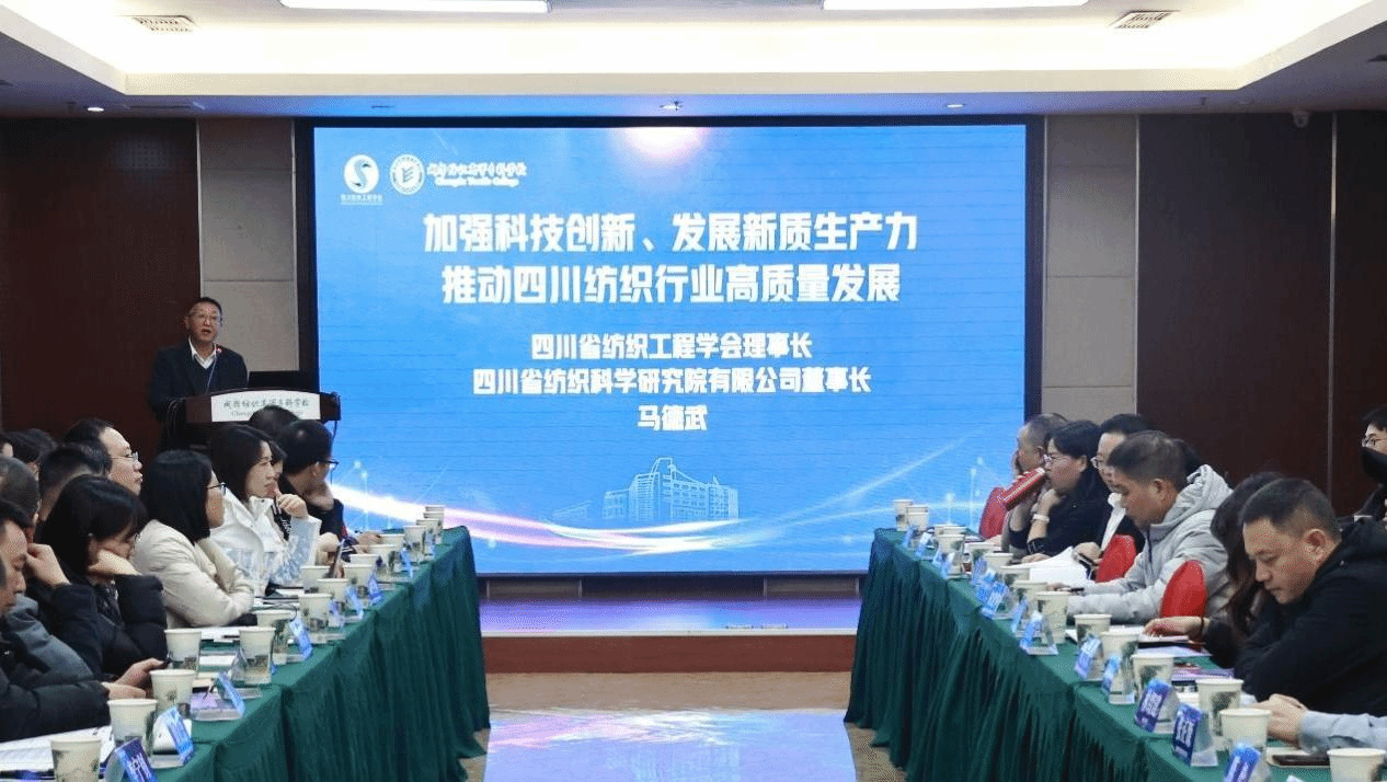 马德武理事长主持会议,并以《加强科技创新、发展新质生产力推动四川纺织行业高质量发展》为题,传达学习了上级有关文件精神。
