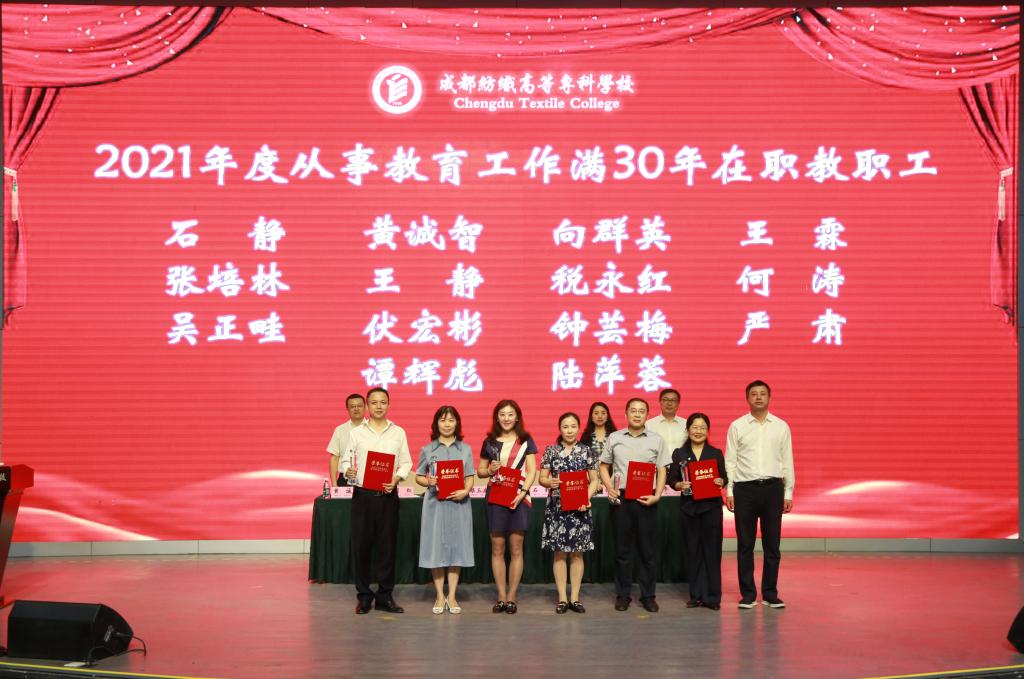 会议通报表扬了2020-2021年度获得市级以上荣誉的集体和个人,为学校工作满30年人员的在职教职工颁发了证书,隆重表彰了2020年度特别贡献奖获奖集体和个人、学校第五届教学名师。