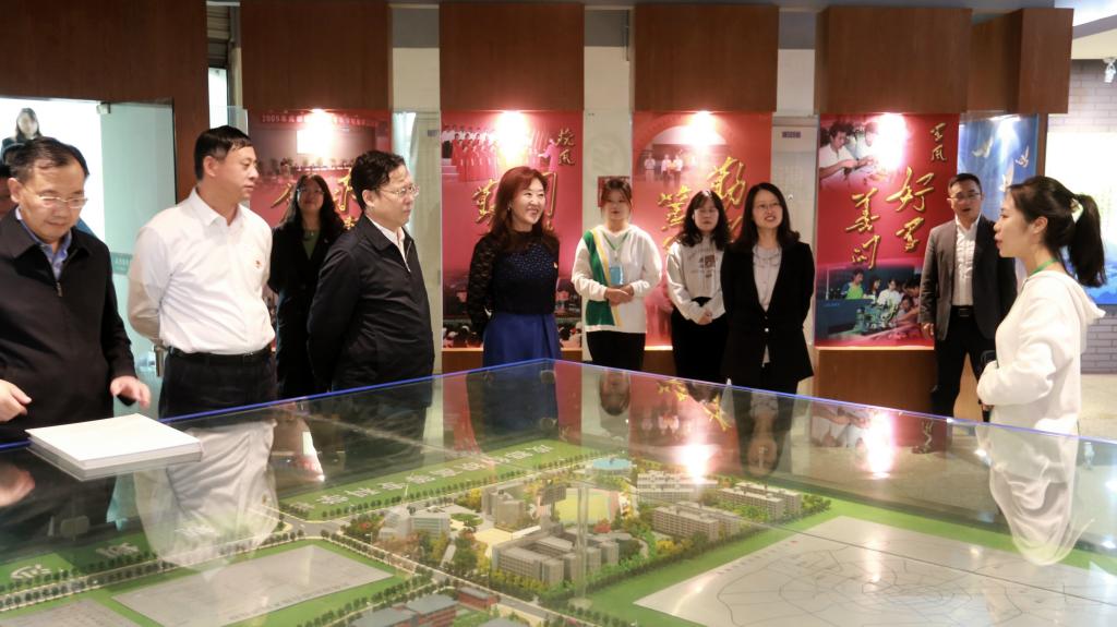 在学校党委书记蔡玉波,党委副书记、校长石静等陪同下,邹瑾考察了学校校史馆、服装设计与工艺技能大赛基地、艺术设计展览厅、蜀绣研究中心绣艺苑学研馆、服装智能制造生产性实训基地。