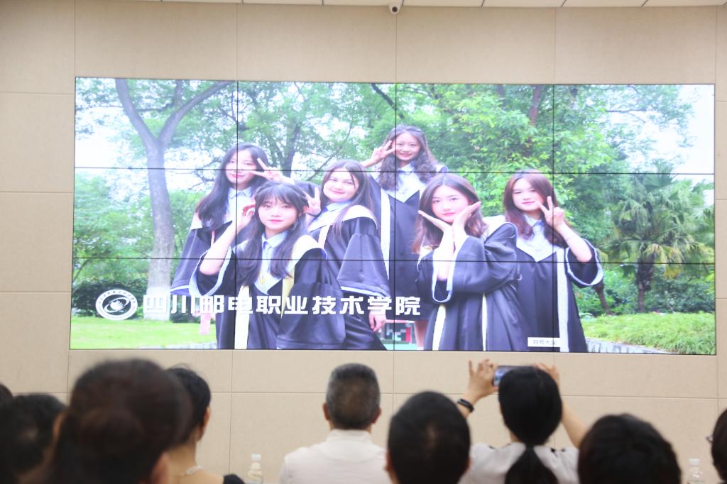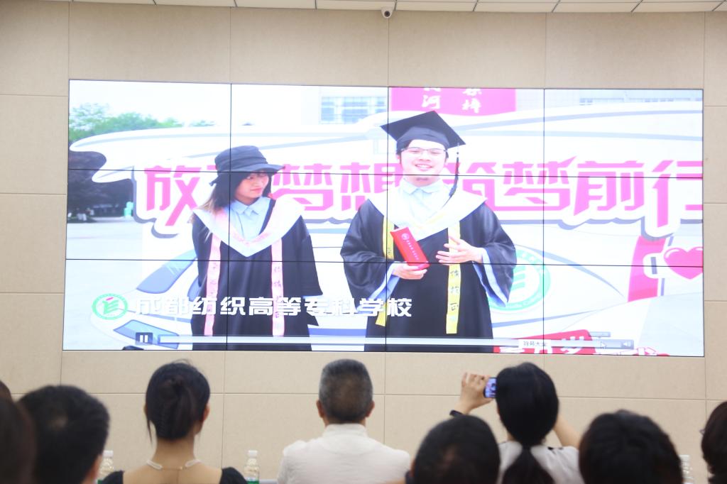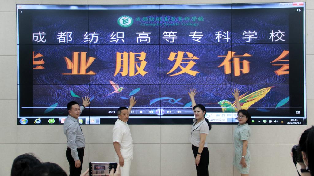 成都市服装(服饰)协会会长黄文章、西澳集团战略部总经理刘强和学校校长石静、党委副书记周红触摸大屏幕,开启了本次发布活动。