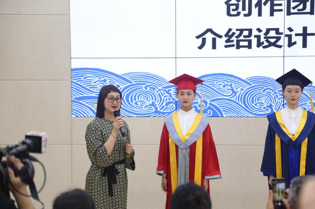 2019年《国家职业教育改革实施方案》和2022年开始实施的新《职业教育法》都明确指出“职业教育与普通教育是两种不同教育类型,具有同等重要地位”。作为具有83年办学历史、服务纺织服装产业的职业院校,作为全国普通高校中华优秀传统文化传承基地、中国纺织服装高技能人才培训基地,学校师生在建设中国特色高水平高职学校和专业群的过程中,敏锐地意识到,应该勇担使命,为中国职业院校设计定制自己的毕业服,填补国内空白。