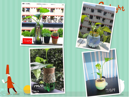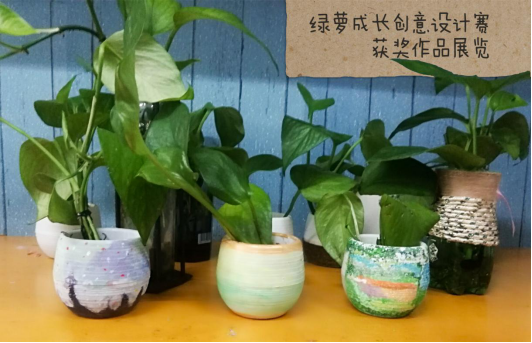 通过一个月的养殖,91盆绿萝在同学们的精心培育下逐渐健康长大。为了让作品更加美观,大家还对花盆进行美化,用画笔根据植物的造型进行创作,用环保材料进行装饰,创作出一个个造型可爱、奇思妙想的作品,为寝室增添一份清新,为校园增添一份色彩的同时,同学们的审美情趣和设计水平也得到了提升。