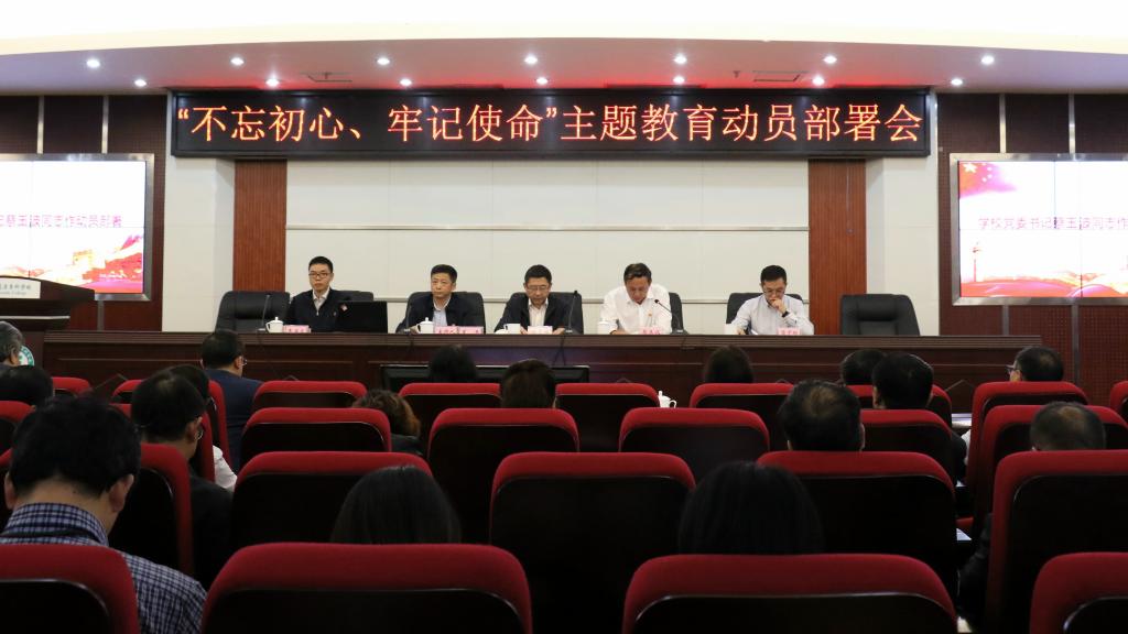 蔡玉波作了题为《为党育人,为国育才》的动员部署讲话。他指出,在全党开展“不忘初心、牢记使命”主题教育,是以习近平同志为核心的党中央统揽伟大斗争、伟大工程、伟大事业、伟大梦想作出的重大部署和战略安排,是深入贯彻落实党的十九大精神的重大举措。学校党委高度重视,召开专题会议审定了全校开展主题教育的工作机构、实施方案等,作出了总体安排部署、提出了明确要求。