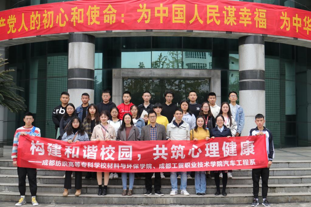 10月15日,成都工贸职业技术学院心理健康指导中心主任唐颖彦、专职心理教师闵星,汽车工程系高职综合科科长蒋斌、专职心理教师左冬梅带领汽车工程系“馨晴心理社”11名同学来到bwin手机客户端,与材料与环保学院党总支书记刘真安、心理健康教育工作站雷春老师和学院心理部10名同学进行了心理健康教育工作交流。