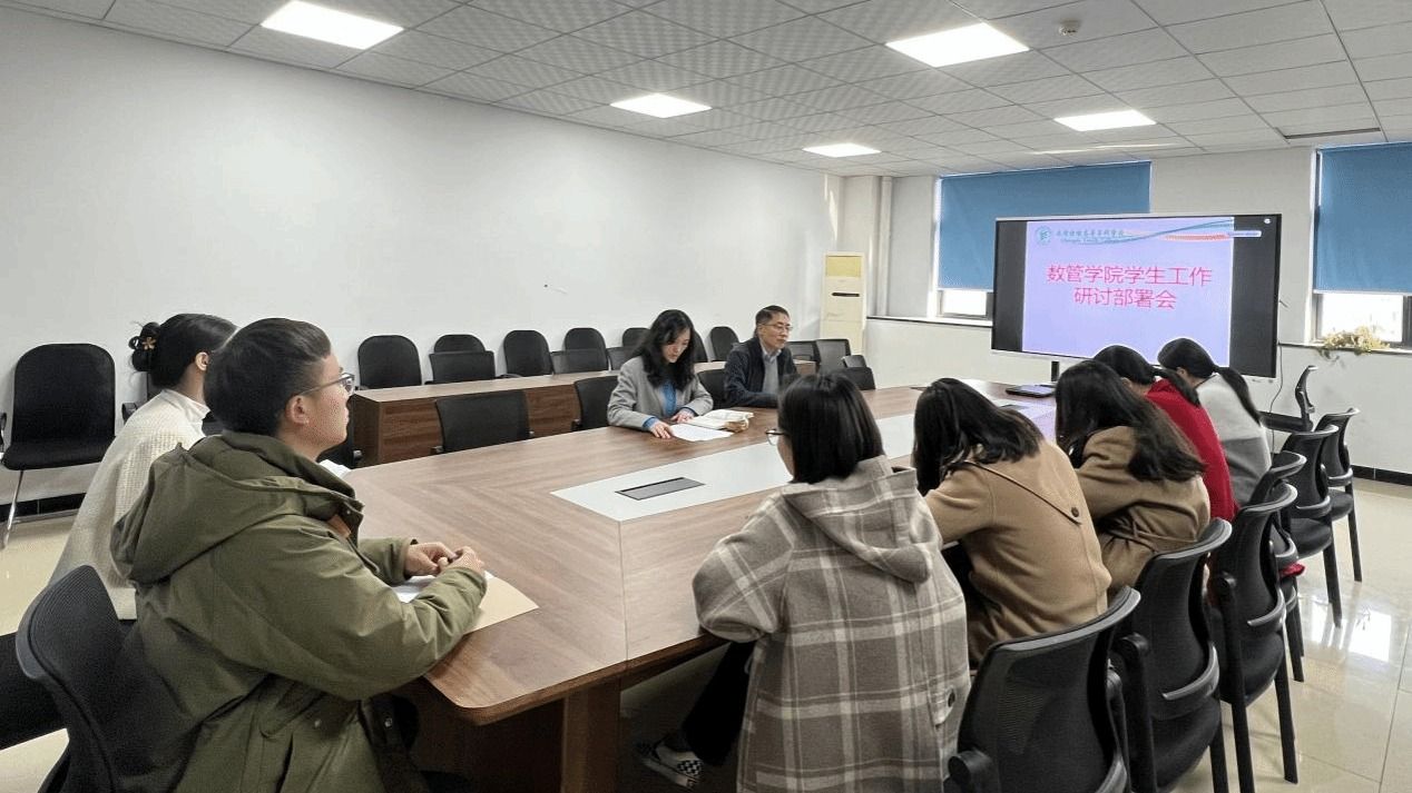 3月20日,数管学院在A402召开2024年春季新学期学生工作研讨部署会,党总支书记王霖及全体专职辅导员参加会议,党总支副书记何酉宁主持会议。