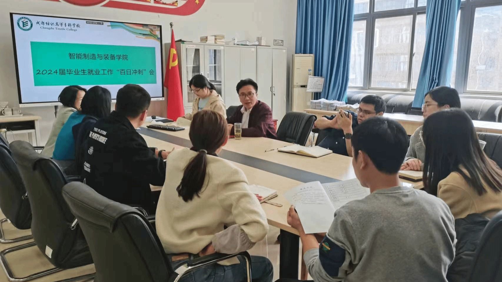 3月25日,智能制造与装备学院在笃行苑B211召开2024届毕业生就业工作“百日冲刺”大会,学院党总支书记曹选平、副书记李敏和全体毕业班辅导员参加会议。