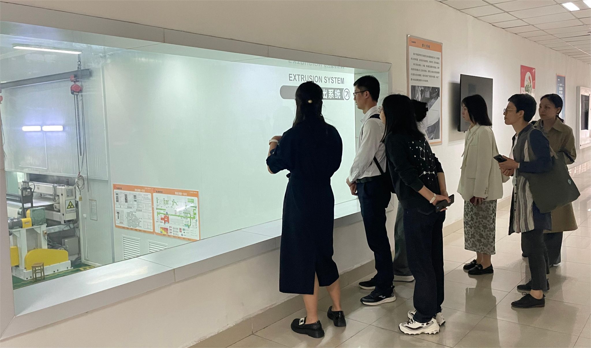 会后,徐秀桃带领学校一行人参观东材科技公司展厅,了解东材的生产产线。