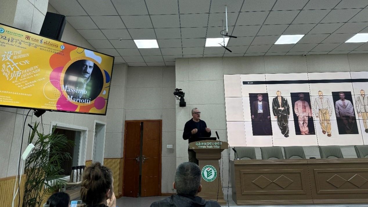 中意合作办学项目教师、独立服装设计工作室总监Massimo先生为学生带来“如何成为时尚设计师”主题讲座。Massimo曾就读意大利拉萨皮恩兹大学建筑学专业,于2005年创立了自己的服装设计工作室,开展服装设计、市场调研、服装复古风格研究、纺织品面料研究、产品市场推广等,并长期从事男女装及配饰设计,为众多时尚大牌如范思哲、CK、切瑞蒂等做过服装及包包的设计。从业经验丰富的Massimo老师以个人经历为例,向学生讲述自己在职业生涯探寻过程中如何找到适合自己的领域,如何寻找设计灵感,以及如何在激烈的市场竞争中立足,发展自己的事业。