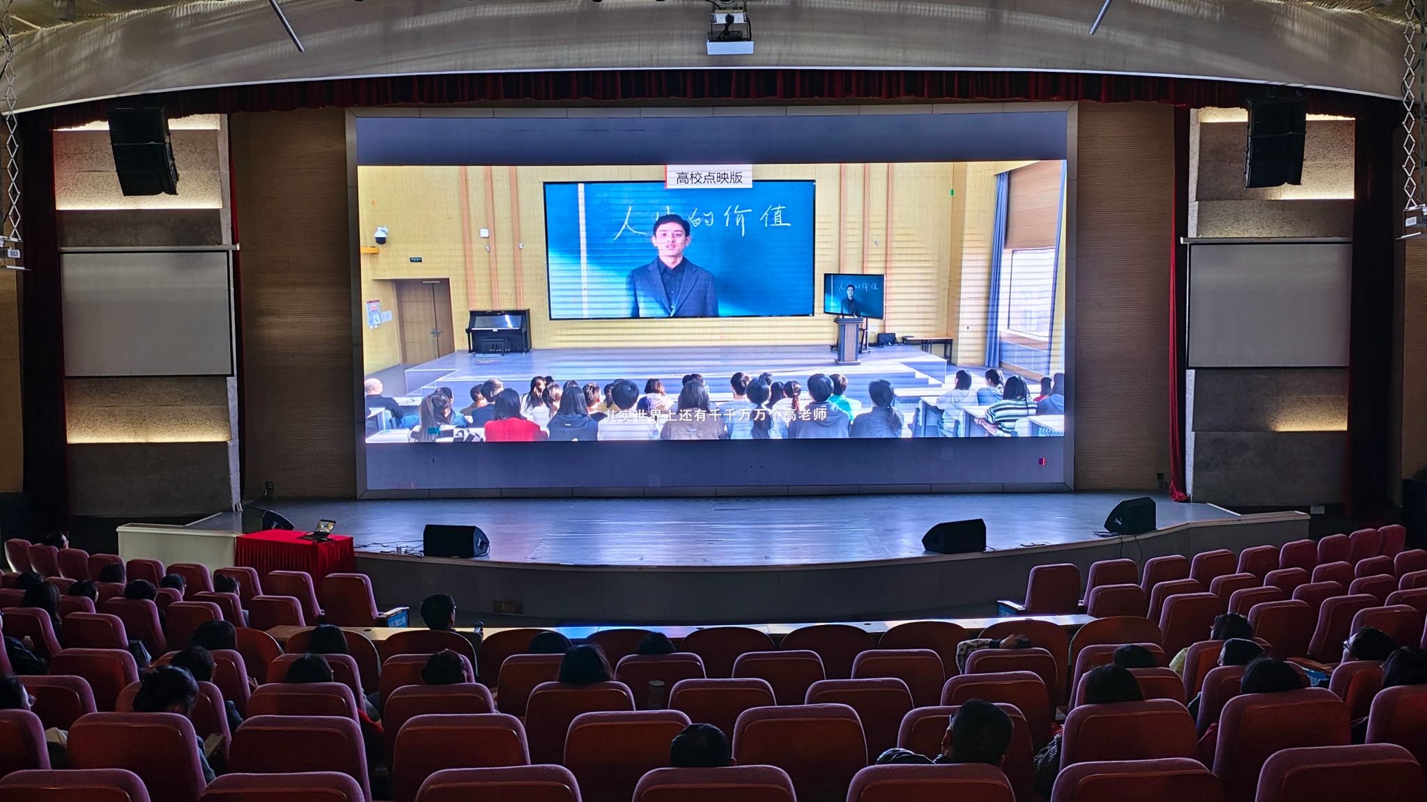 观影结束后,老师们纷纷拿起手机朝向LED大屏扫码答题,积极参与影片点映测评,纷纷表示,这是一堂生动的思政课。马克思主义学院专职教师郑丽枭谈到自己的感想时说:“看完影片深受感动,作为思政课教师,我们要做学生的榜样,让学生在学习的过程中树立更好的人生观、价值观、世界观”。史在宏表示:思政课教师必须政治要强、情怀要深、思维要新、视野要广、自律要严、人格要正,做到既“专”又“博”,既要精通专业知识、做好“经师”,又要涵养德行、成为“人师”,努力做精于传道授业解惑的“经师”和“人师”的统一者,做为党育人、为国育才的“大先生”。