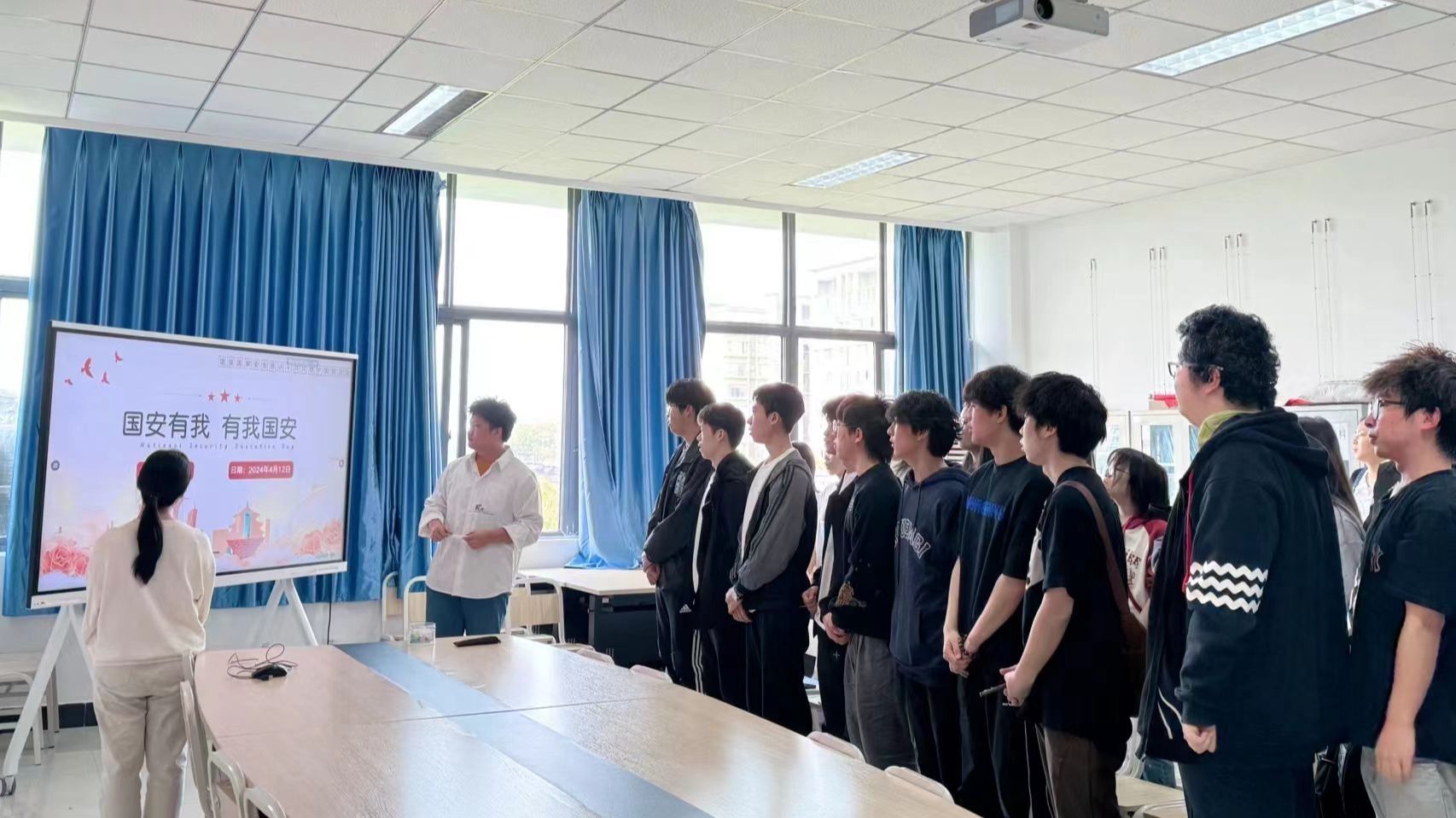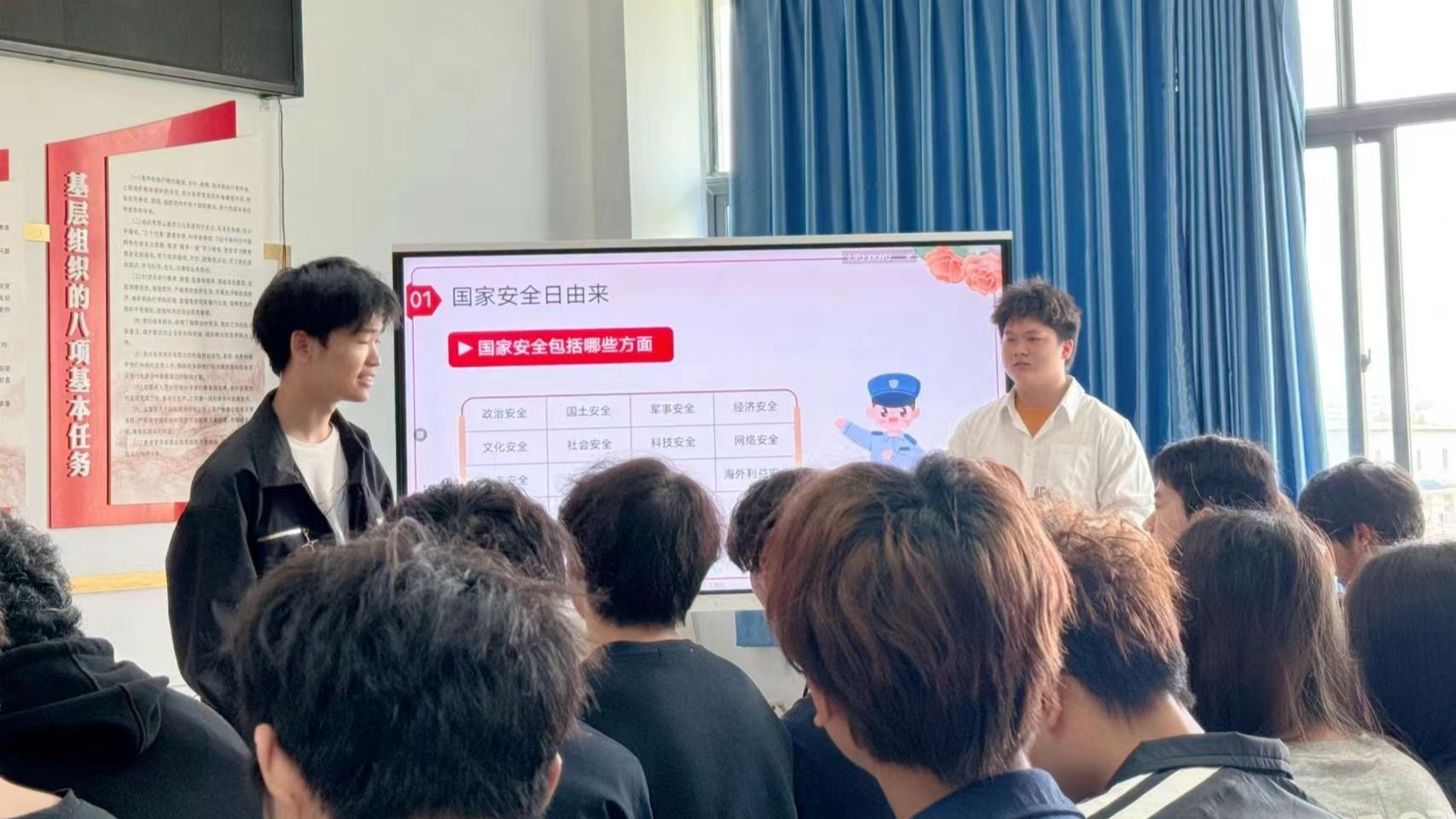 班会中,陈安同学朗诵毛泽东同志的诗《七律·人民解放军占领南京》来表达自己的观点:国家领土神圣不可分割,每一个中国人都有责任和义务维护祖国领土的完整,当代青年更是义不容辞。我们当代大学生要以民族复兴为己任,用热血和汗水浇灌最美的青春之花。最后,全体同学集体宣誓“国安有我,有我国安”,表达捍卫祖国安全的决心。