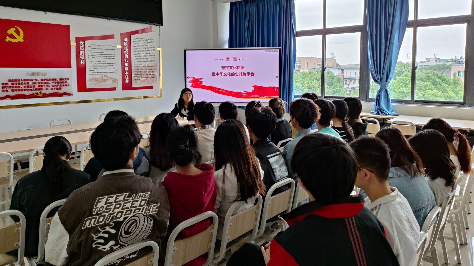敬珊指出,文化自信是国家、民族对自身历史和文化价值的清晰认知和充分肯定,是国家发展中最基本、最深沉、最持久的力量。源远流长的传统文化、奋发向上的革命文化、与时俱进的社会主义先进文化等均是中华文化繁荣、相互辉映的深刻体现。她强调,大家要正确认识和学习中华文化,大力弘扬以爱国主义为核心的民族精神和以改革创新为核心的时代精神,积极践行社会主义核心价值观;面对当前西方文化的强势来袭,青年党员要始终坚持正确的政治方向,筑牢意识形态主阵地,把握好思想建设总开关,牢牢坚守中华文化立场。