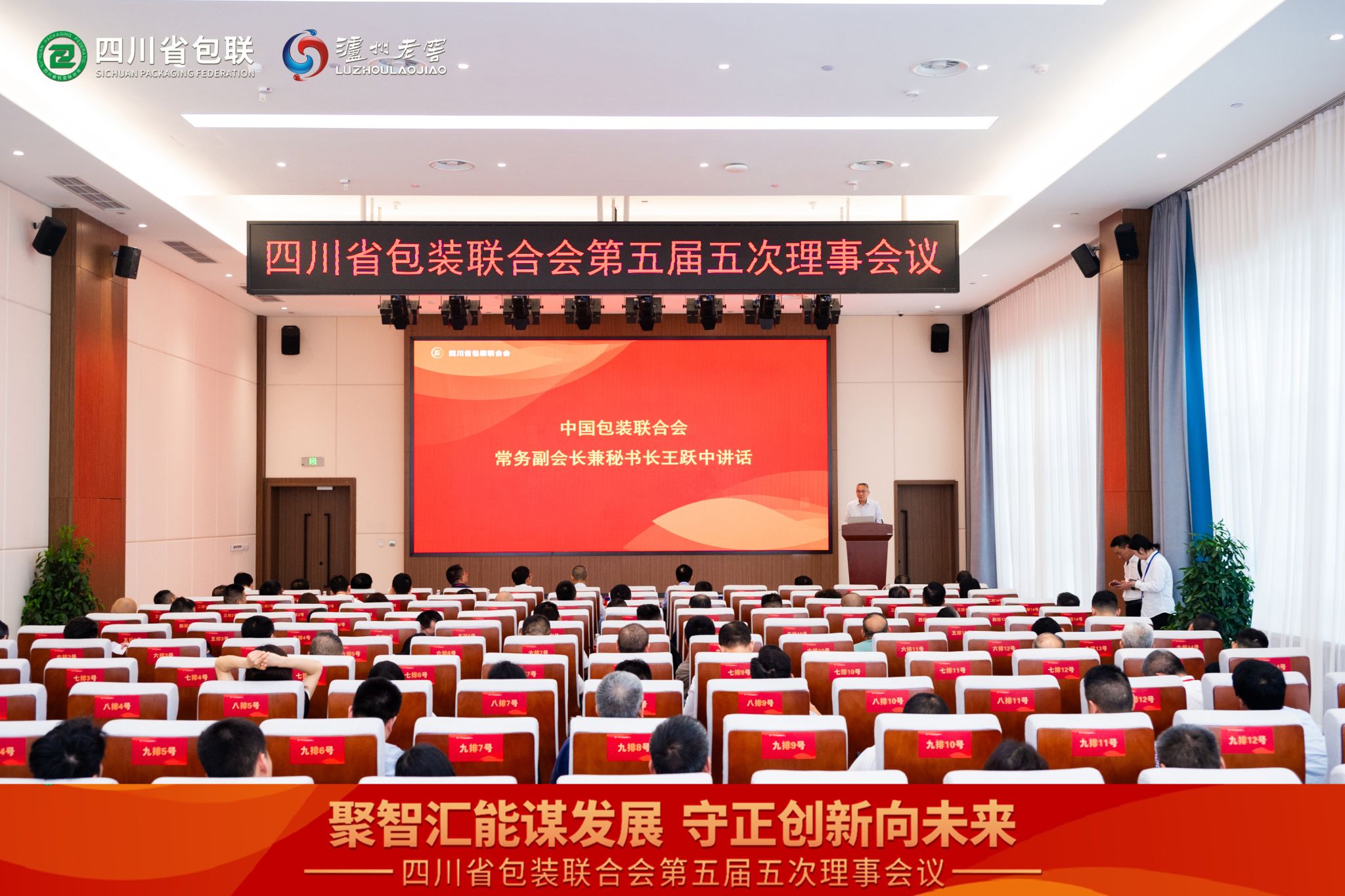会议由四川省包装联合会主办,泸州市酒类包装研究协会承办,并得到泸州老窖股份有限公司大力支持。中国包装联合会常务副会长兼秘书长王跃中出席并发表重要讲话,泸州老窖股份有限公司副总经理兼首席质量官何诚致欢迎辞,宜宾普拉斯包装材料有限公司董事长、省包装联会长周立权作题为《聚智汇能谋发展,守正创新向未来》的工作报告。