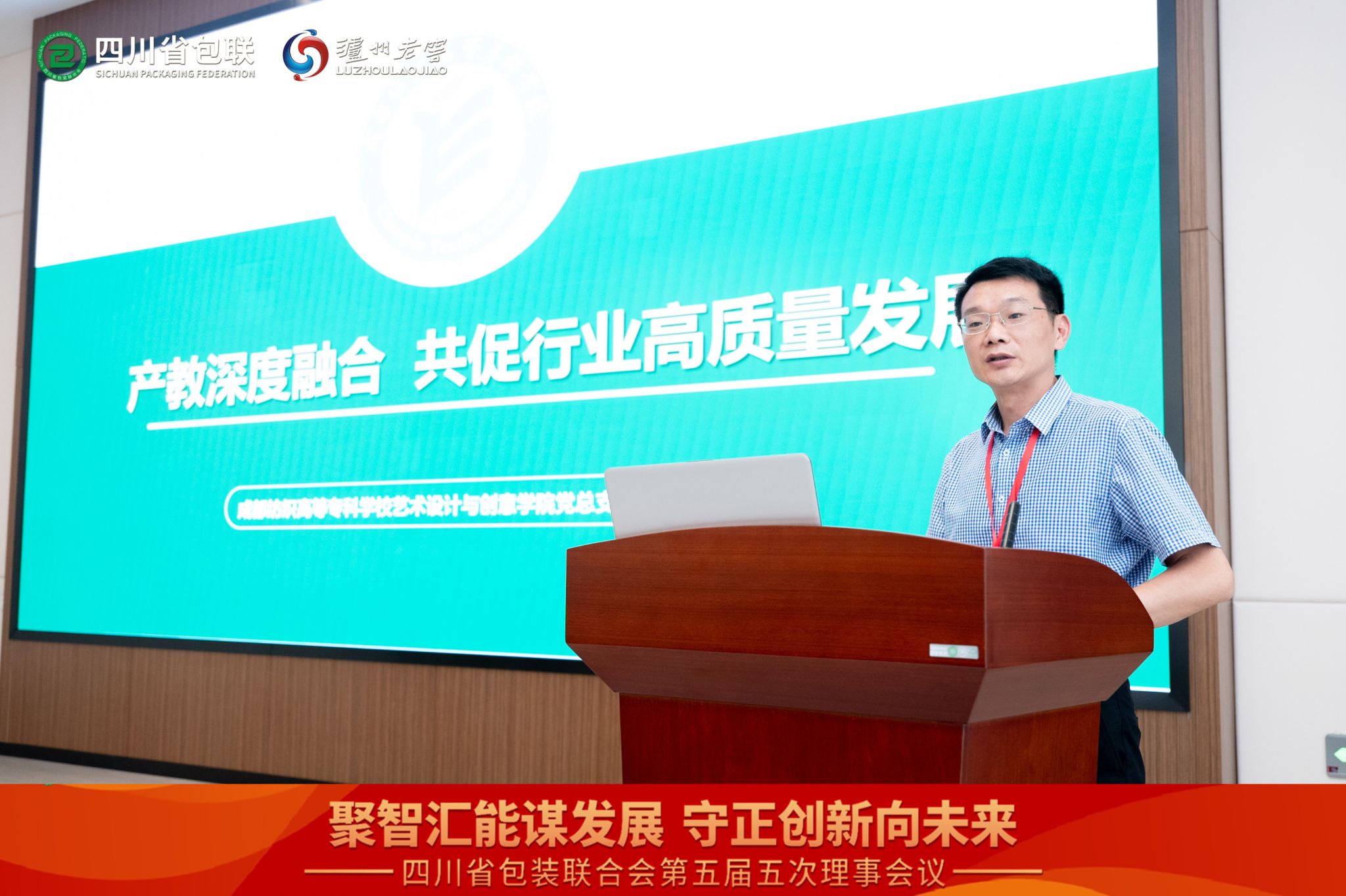 5月17日,四川省包装联合会第五届五次理事会在四川泸州白酒产业园区召开,省内从事包装行业的企事业单位代表共计180余人参加会议。会上,学校被增补为常务理事单位,创艺学院院长刘畅当选常务理事,创艺学院党总支书记王坤作主题发言。