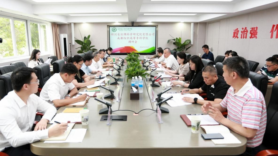 6月5日下午,四川省丝绸科学研究院有限公司党委书记程明一行来校调研。学校党委书记蔡玉波,党委常委、副校长刘莉、李明富出席座谈会,座谈会由李明富主持。