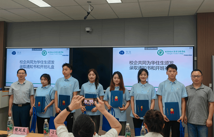 赵媛媛老师详细介绍了订单班后续的课程和活动安排。企业代表和学院领导共同为同学们发放了录取通知书。
