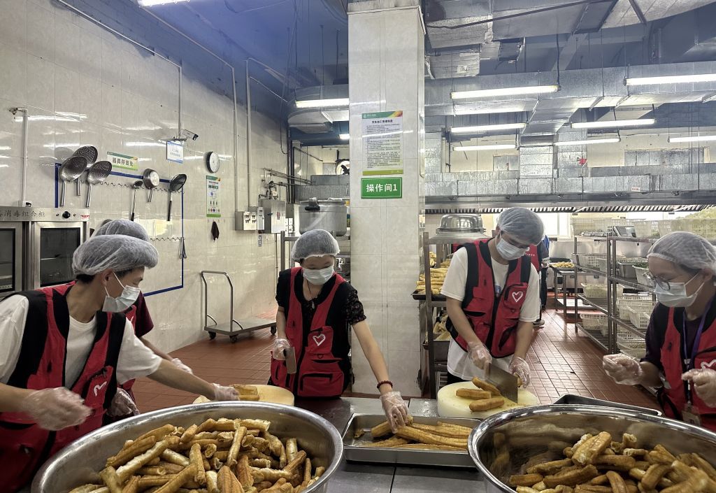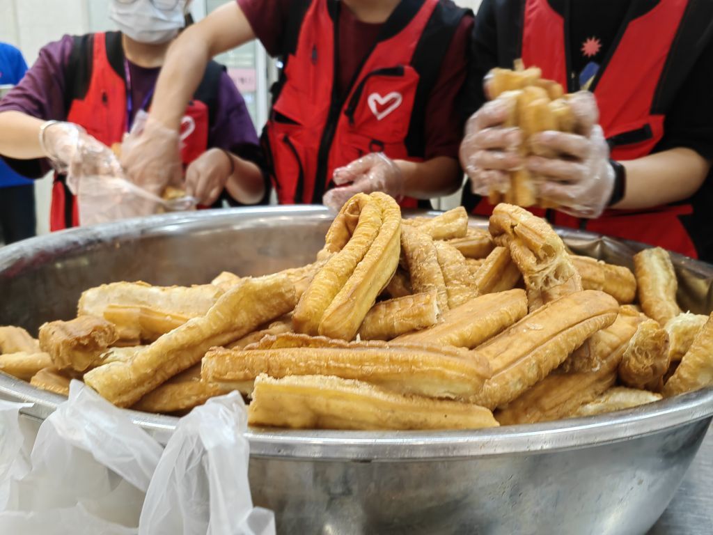 活动中,电信学院的学生志愿者深入后厨,全程参与了菜籽油运输,油条的拆装、分切与发放等分享过程。一根根金黄酥脆的油条整齐摆放,香气四溢,吸引了众多师生前来领取、品尝。