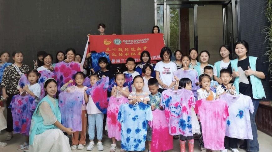 7月9日,团队前往五粮社区开展“扎染非遗,服饰生花”志愿服务活动。通过实践体验,让小朋友们切实感受非遗扎染的魅力所在,传承与发扬非物质文化遗产,同时普及服装服饰小知识,提升小朋友们的文化素养与专业兴趣。