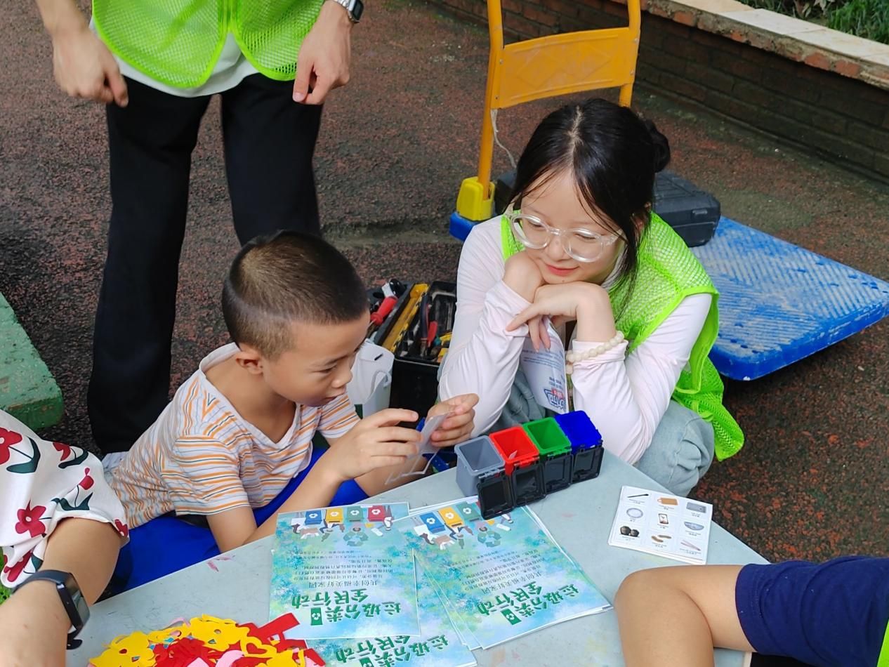 社会实践团队在对儿童进行垃圾分类知识宣传