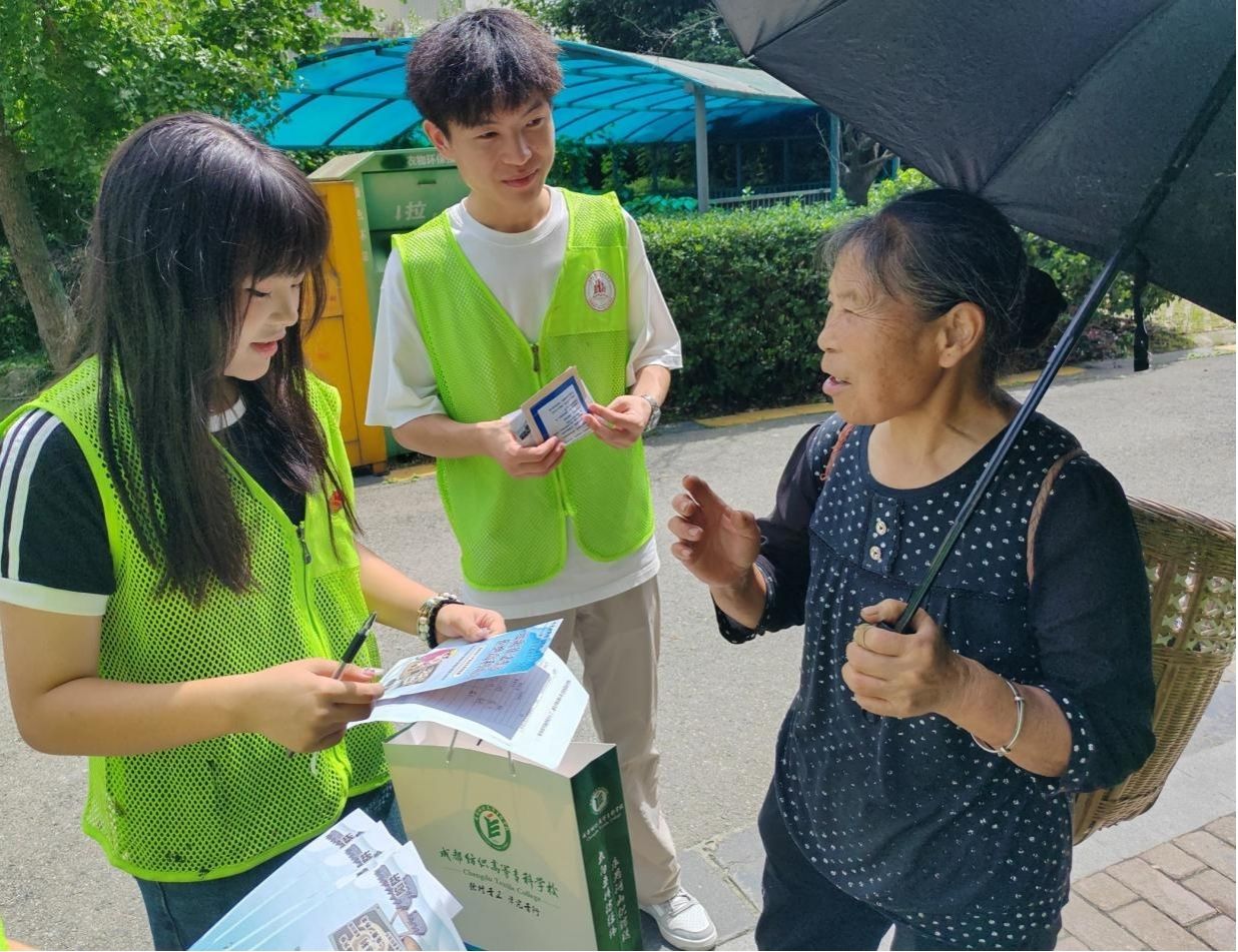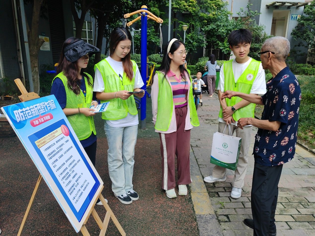 社会实践团队在对老人进行反诈宣传