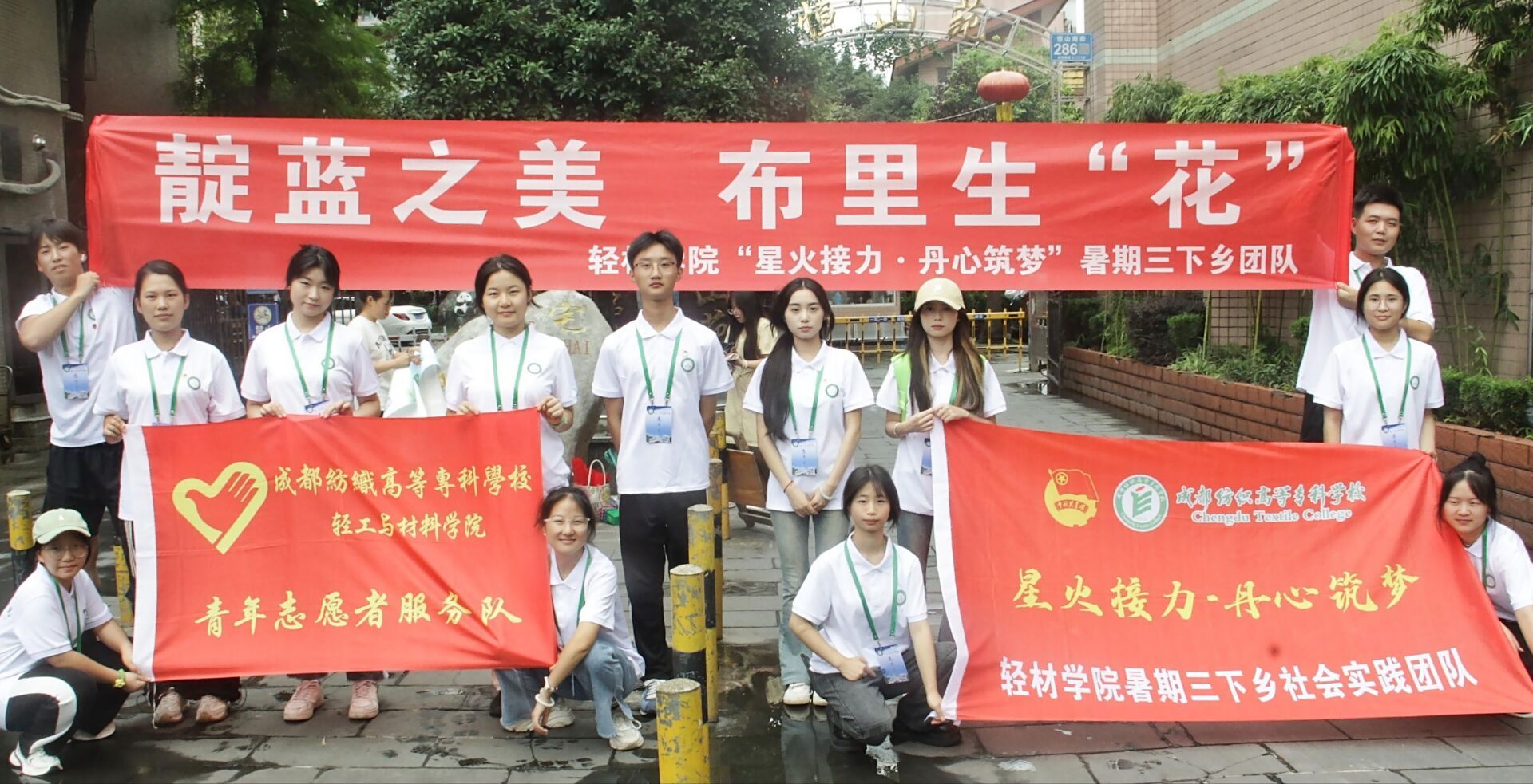 7月17日,轻工与材料学院“星火接力 丹心筑梦”暑期“三下乡”社会实践团队在郫都区友爱镇石羊村阳光驿站开展第二期“靛蓝之美,布里生‘花’”手工扎染活动,吸引了附近30余名老中青村民积极参与。