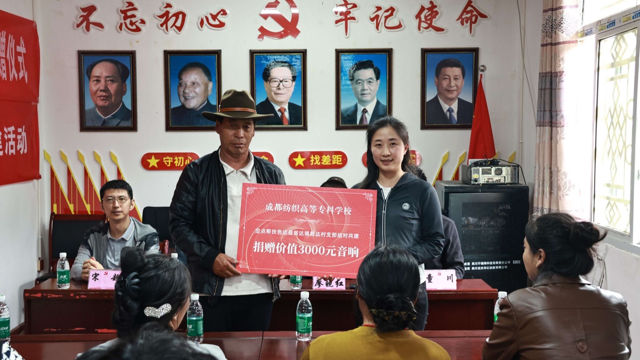 校地双方还在学校定点帮扶点翁达村开展党建结对共建活动,学校机关党委第四支部向翁达村党支部捐助价值3000元的音响设备。蒲冰远代表学校讲话,表示将发挥学校智力优势和“三心双艺”党建品牌优势,在党组织结对共建、教育帮扶、开展游学活动、发展庭院经济和采购农副产品等方面,给予翁达村更多支持。