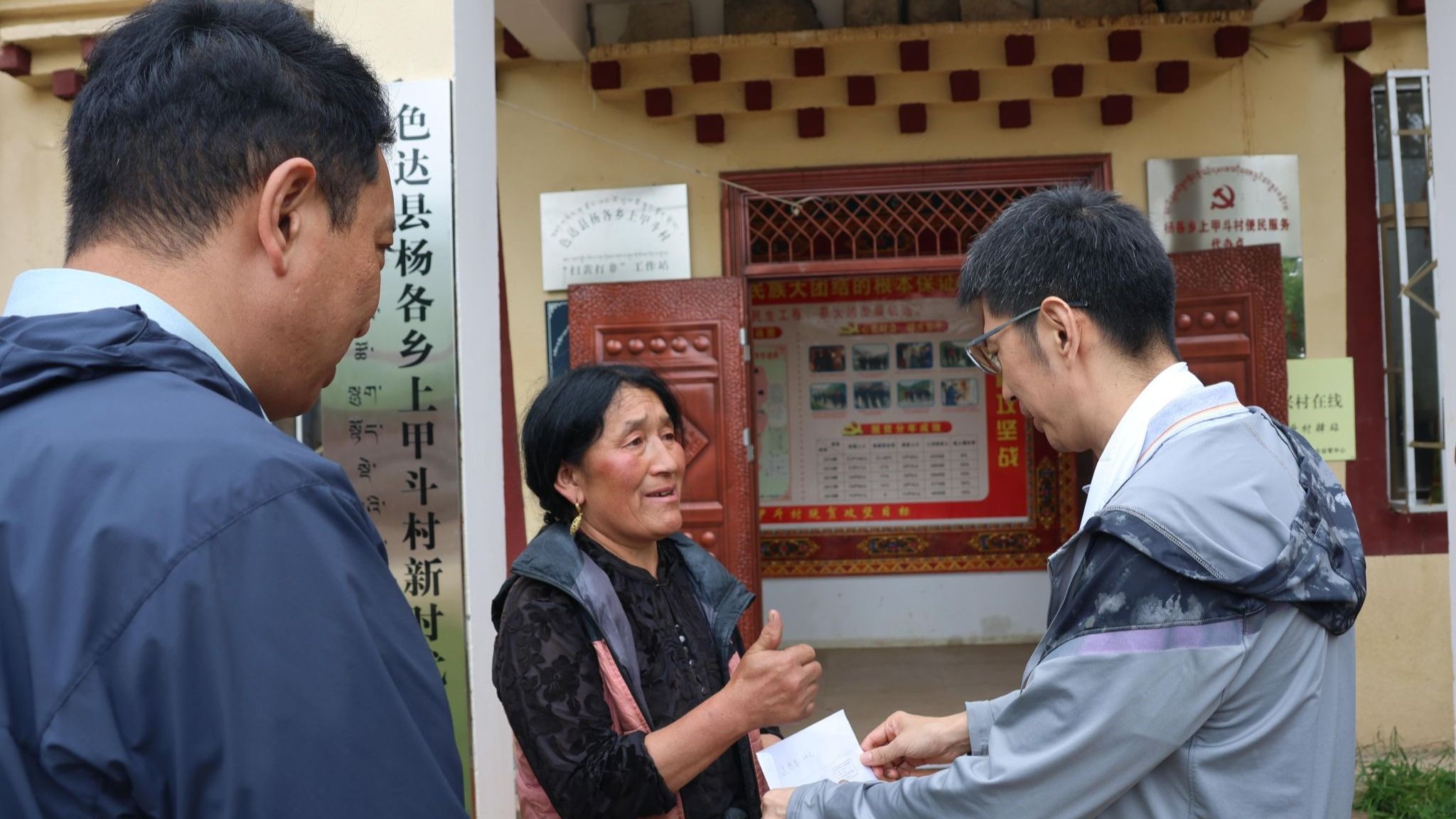 在学校定点帮扶点杨各乡上甲斗村,宋超、蒲冰远一行与杨各乡党委书记德甲,副书记呷绒波、更登格西等乡党政领导和上甲斗村两委负责人、驻村工作队员、村民代表座谈交流。德甲等对bwin手机客户端对杨各乡上甲斗村的倾力帮扶和派驻上甲斗村第一书记陈永平同志的辛勤付出表示由衷感谢,杨各乡党委政府将继续全力支持学校驻村干部落实学校帮扶的各项工作。双方就下一步更好地开展党建引领、学生教育、技能培训、产业发展、防返贫工作等进行了交流讨论。宋超、蒲冰远代表学校向杨各乡政府和上甲斗村党支部分别捐赠帮扶资金各1万元,用于乡政府节能改造和党建结对共建工作,并对上甲斗村困难群众进行了慰问。