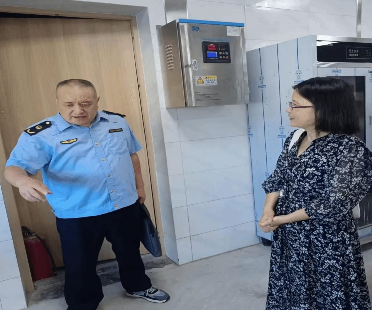 8月19日上午,邛崃市市场监督管理局副局长、党组成员简伟带队到bwin手机客户端邛崃产教园区指导校园食品安全工作,学校安全与后勤保障处党总支书记李英及食堂相关人员陪同检查。
