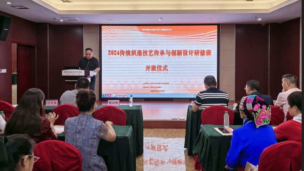 9月2日,由中华人民共和国文化和旅游部主办,在四川省文化和旅游厅指导下由bwin手机客户端承办的“中国非物质文化遗产传承人群研修研习——2024传统织造技艺传承与创新设计”培训项目在犀浦校区开班。四川省文旅厅非物质文化遗产处一级调研员杨必树,bwin手机客户端继续教育中心主任隗送爽,纺织学院院长宋雅路、党总支书记谭林、副院长胡雪梅以及省织绣技艺非遗数字化保护与传承重点实验室马德坤大师出席开班仪式。